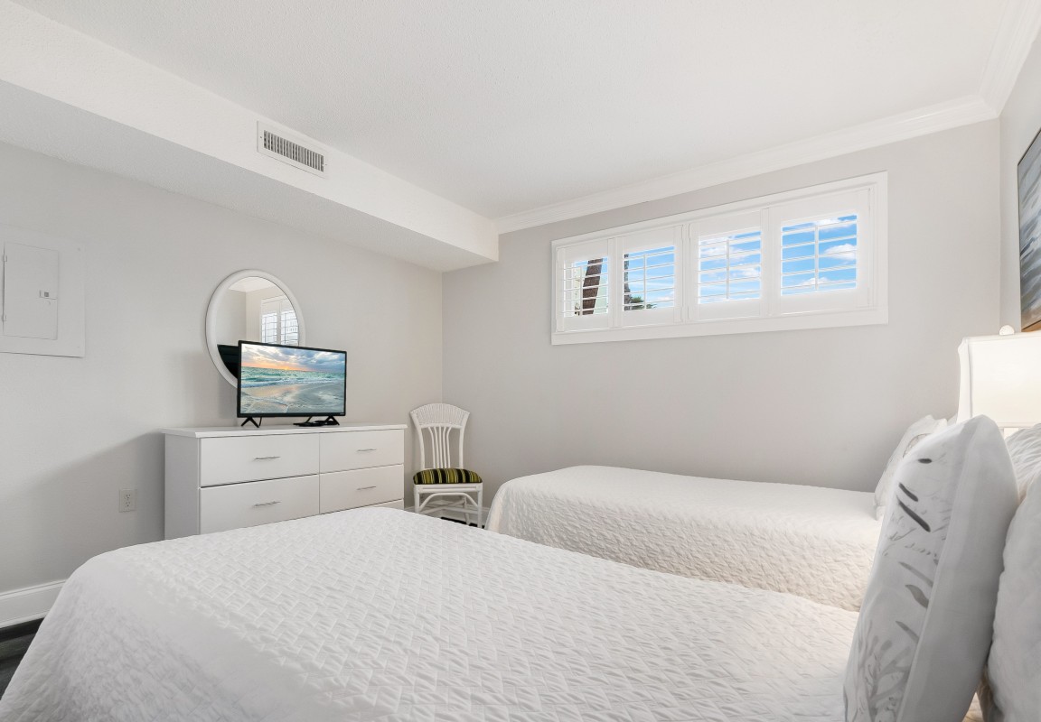 Bedrooms: This two-bedroom, two-bath condo is designed for restful nights. The master bedroom includes a king-size bed, 27” TV, and relaxing ambiance, while the guest room offers two twin beds, a 24” TV, and DVD player—ideal for children or friends.