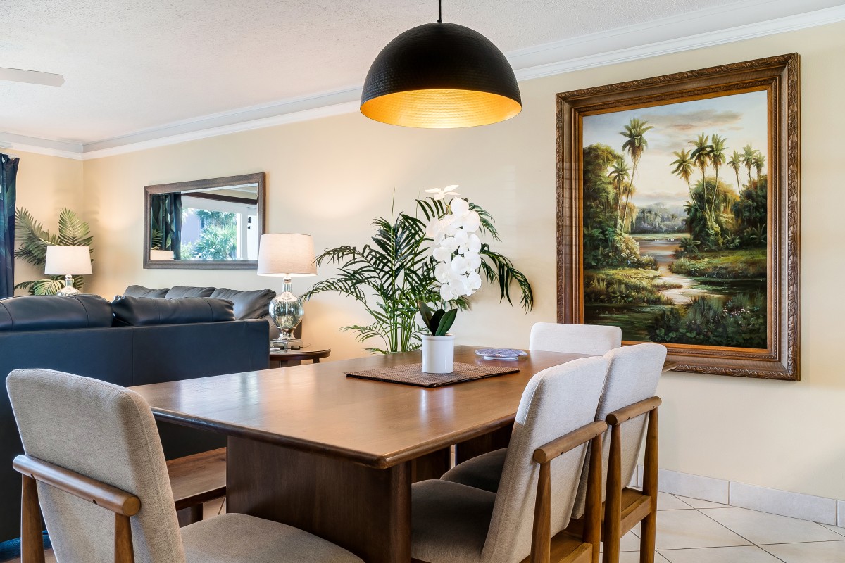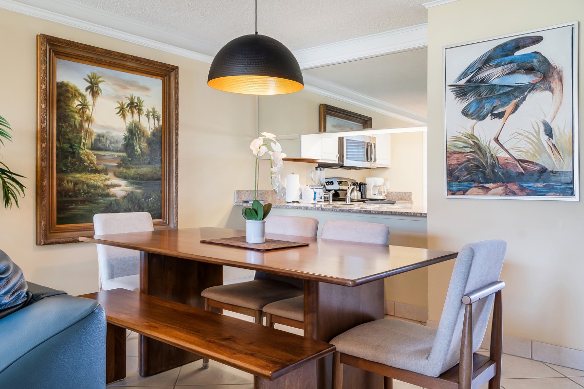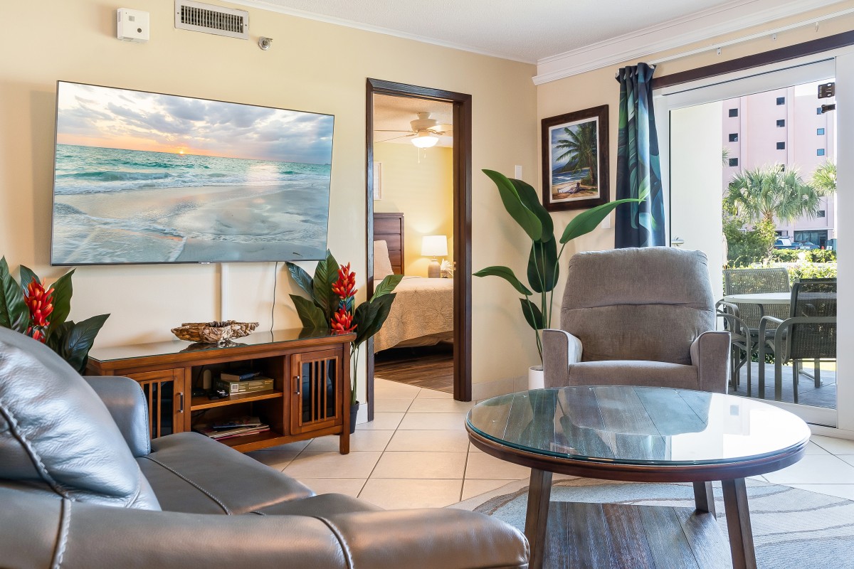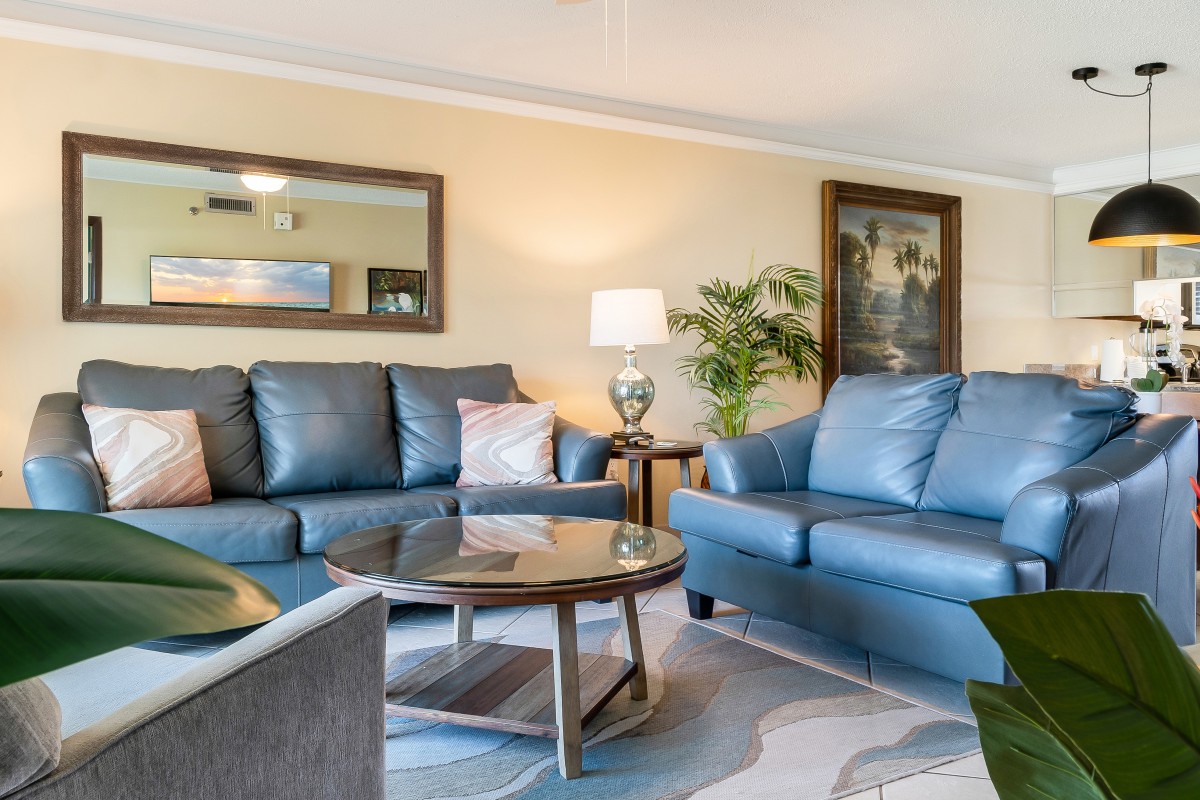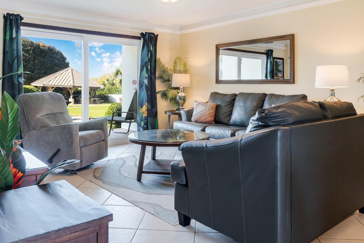 This condo has recently been updated with new LVT throughout the unit. An Ashley leather sleeper sofa and loveseat make the living space comfortable and cool. With a full kitchen, new kitchen table, all this space needs is you and your family.