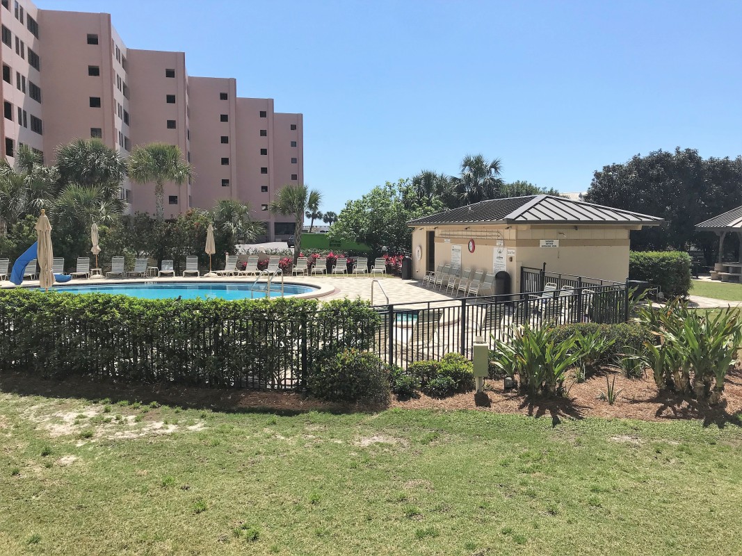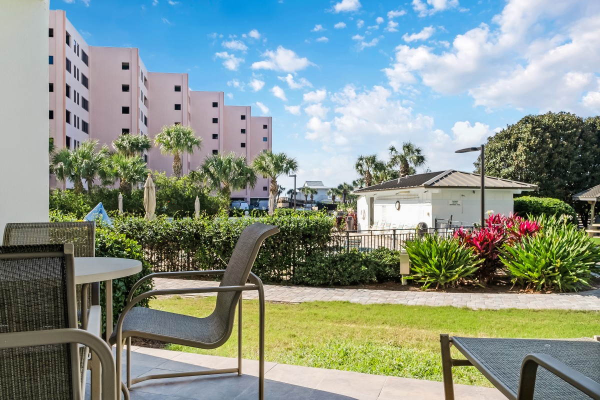Enjoy your ground floor patio overlooking the pool and shuffleboard court.