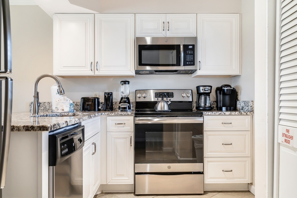 Fully Equipped Kitchen: The recently renovated kitchen includes an open bar, custom cabinets, granite countertops, stainless steel appliances, and a Keurig, providing everything you need to prepare meals. Enjoy eating dinner, important discussion about what activities and attraction to visit in Destin around the dining table that seats six.