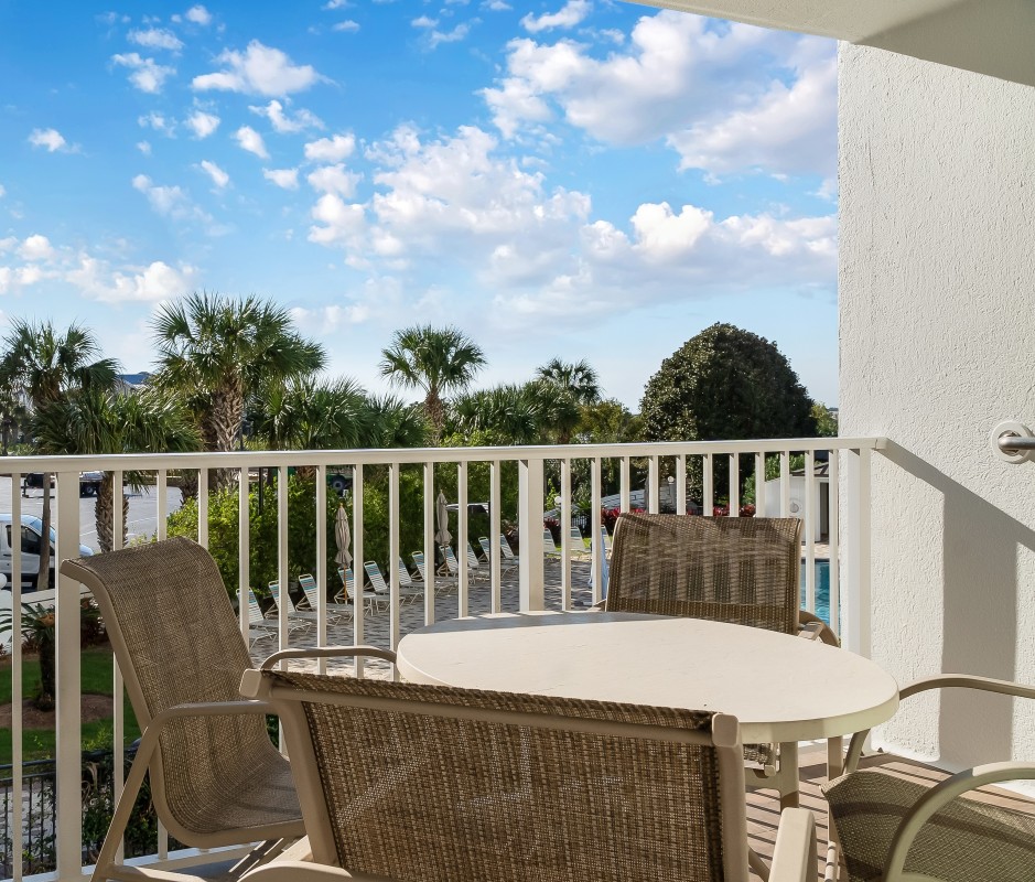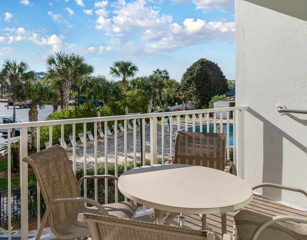 Private Balcony: Venture out to the private balcony and enjoy great views of the beach and the west side pool, perfect for morning coffee or evening relaxation while watching the boats entering and leaving the harbor.