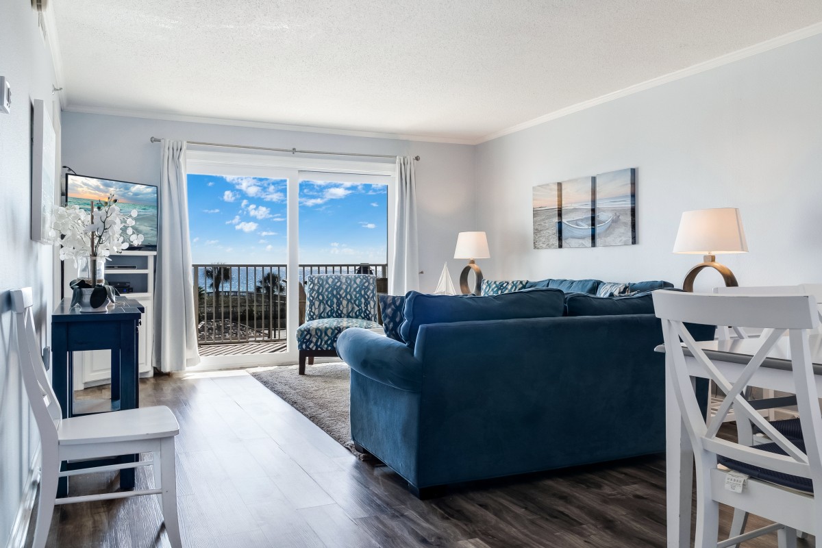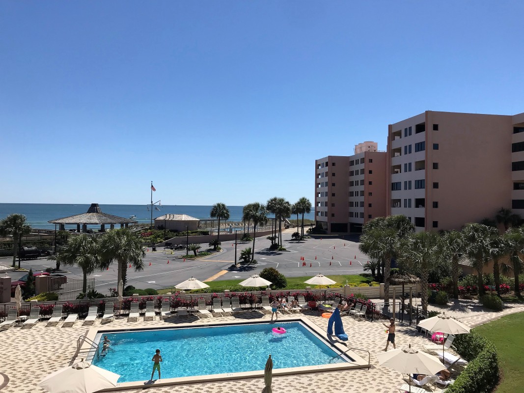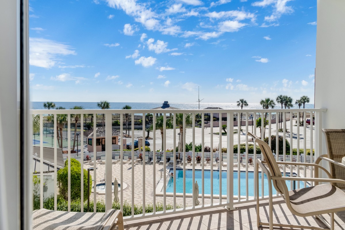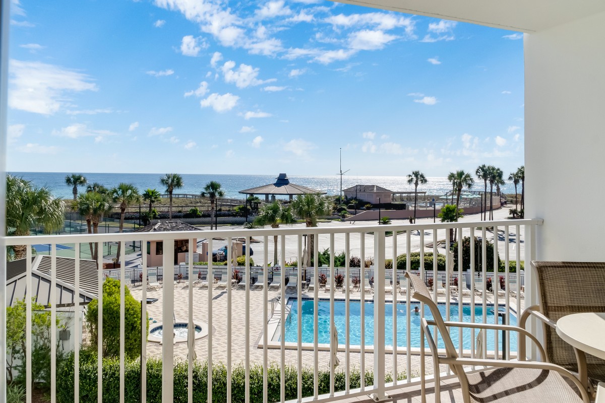 Our vacation rental features an East View, bronze rated, a private balcony, affordable vacation rental that comfortably accommodates up to 6 guests. Enjoy your vacation experience with quick and easy access to the beach, the pools, hot tubs, pickleball courts, and more!