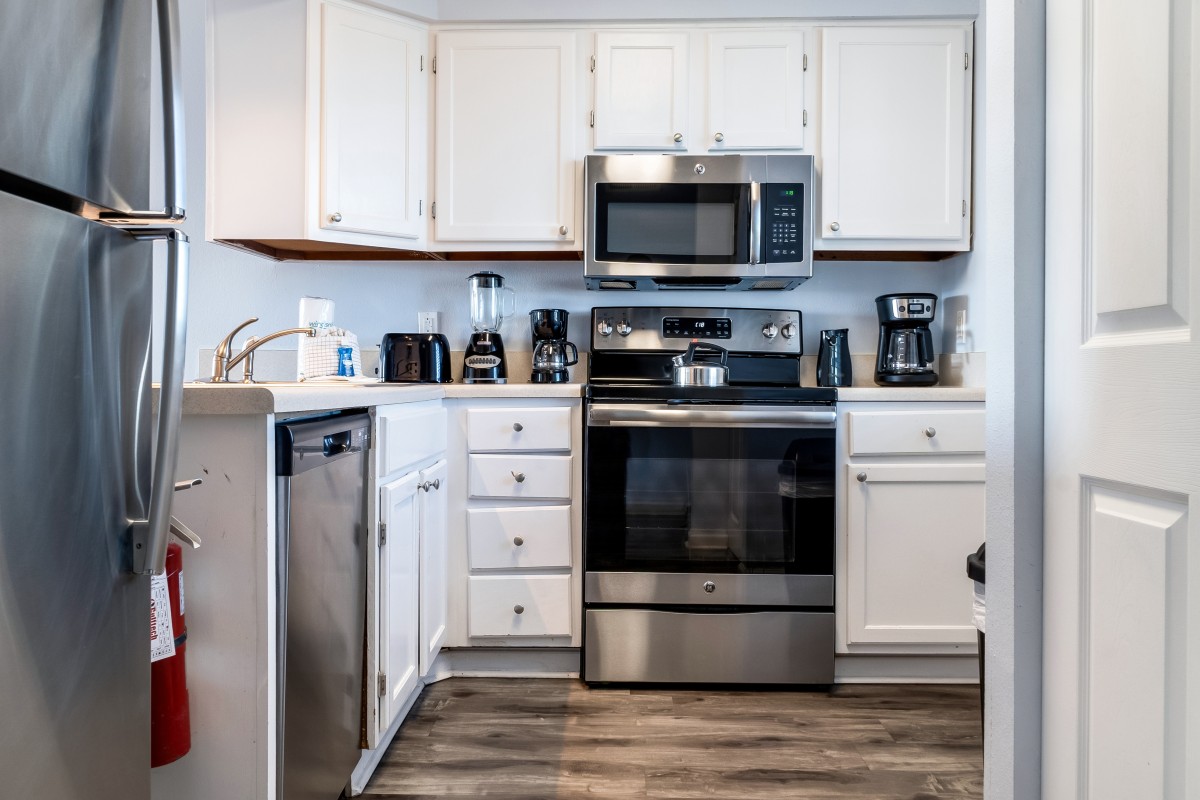 Fully Equipped Kitchen: The recently renovated kitchen is adorned with stainless steel appliances and comes fully equipped with everything you need to prepare delicious meals. The only thing missing is you & your groceries!