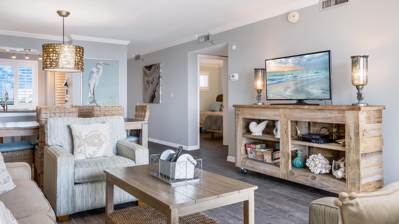Nestled on Holiday Isle in Destin, Florida, our vacation rental is beautifully remodeled, proudly rated a Platinum, with east views, and just steps away from the sparkling beaches of Florida’s Gulf Coast! Updated with fresh paint, new tile throughout, all-new bedding, bath & lighting fixtures, floral arrangements, artwork, and comfortably accommodating up to 6 guests.