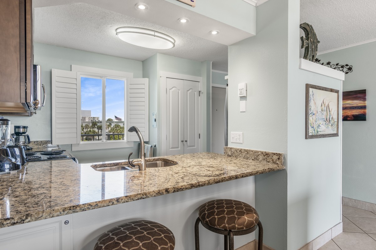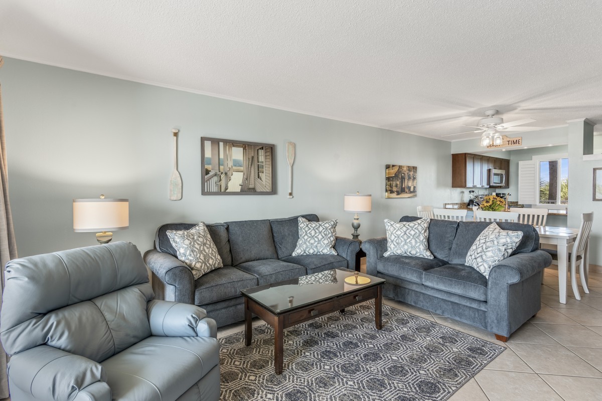 Your dream beach retreat awaits! Our Platinum-rated vacation rental offers a washer & dryer, breathtaking gulf views from the private balcony, and a beautifully decorated condo for an incredible vacation experience. Unit 308 is high enough for a great view and low enough to skip the elavator wait! Our rental has been updated with new flooring in both bedrooms and master bath, fresh coat of paint, new kitchen appliances, new solid wood interior doors, and new living room furniture. When you’re ready to see what the property offers check out our pools, pickleball courts, fitness center, and a children’s summer activities program.