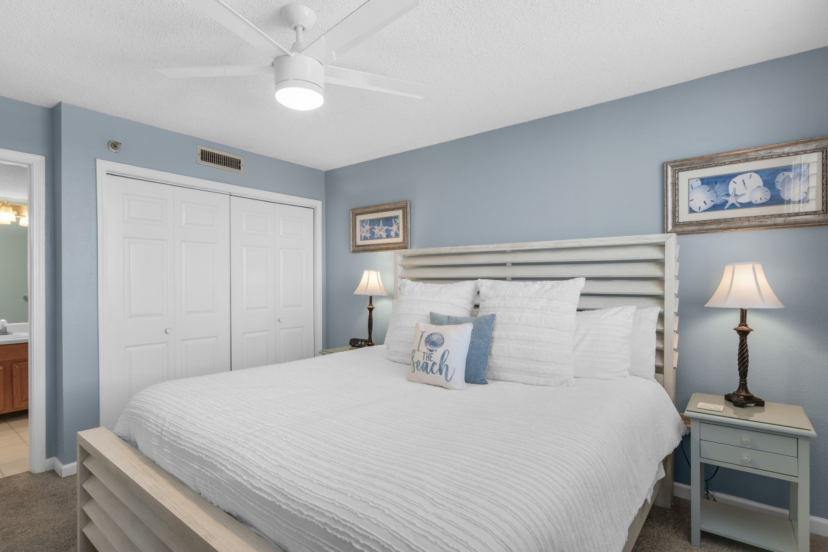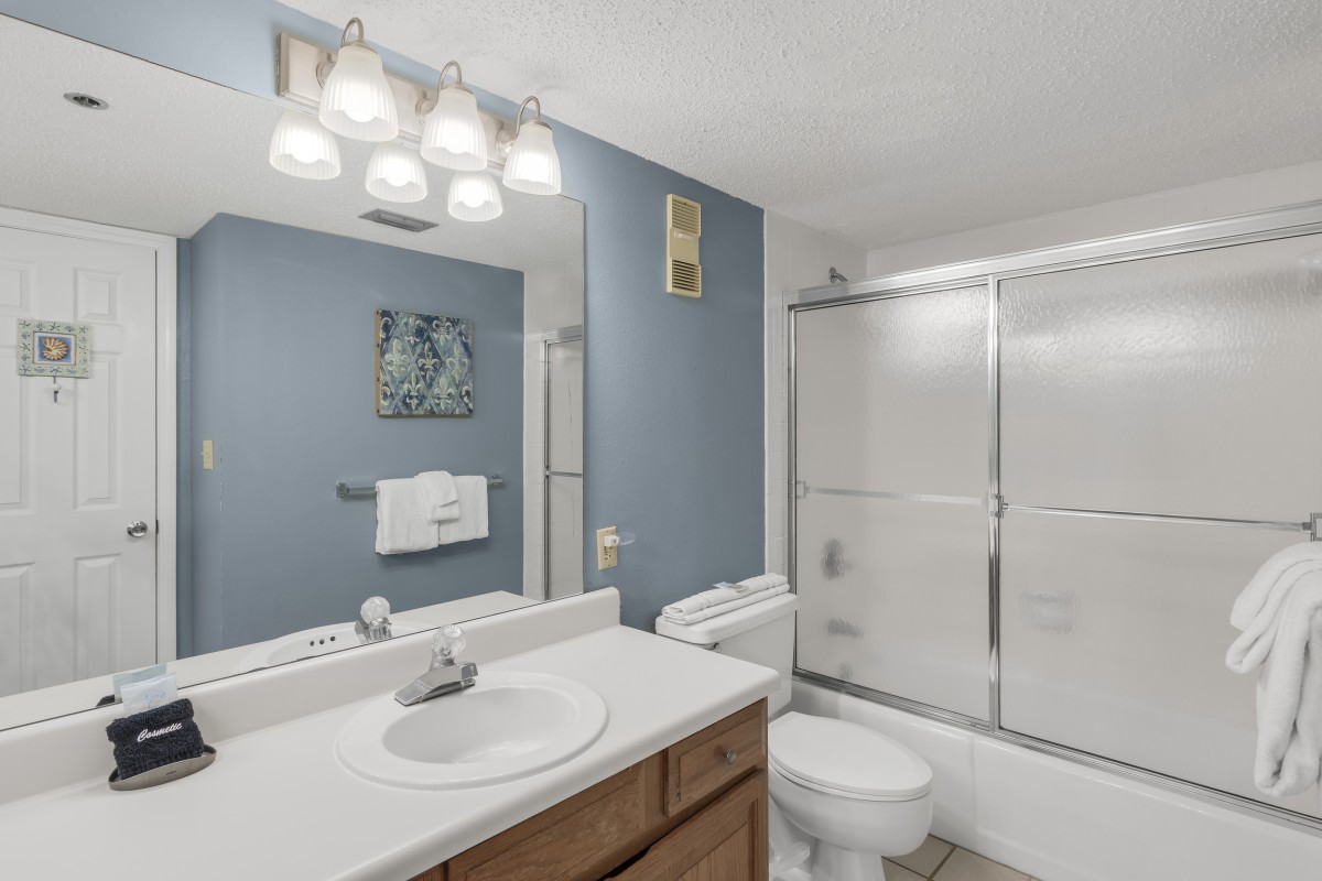 The master bedroom boasts a king size bed, and a 28” TV and DVD Player. The bathroom has a tub/ shower combo. The guest bedroom has a queen size bed and a 24” TV and DVD player, The guest bathroom has a tub/ shower combo.