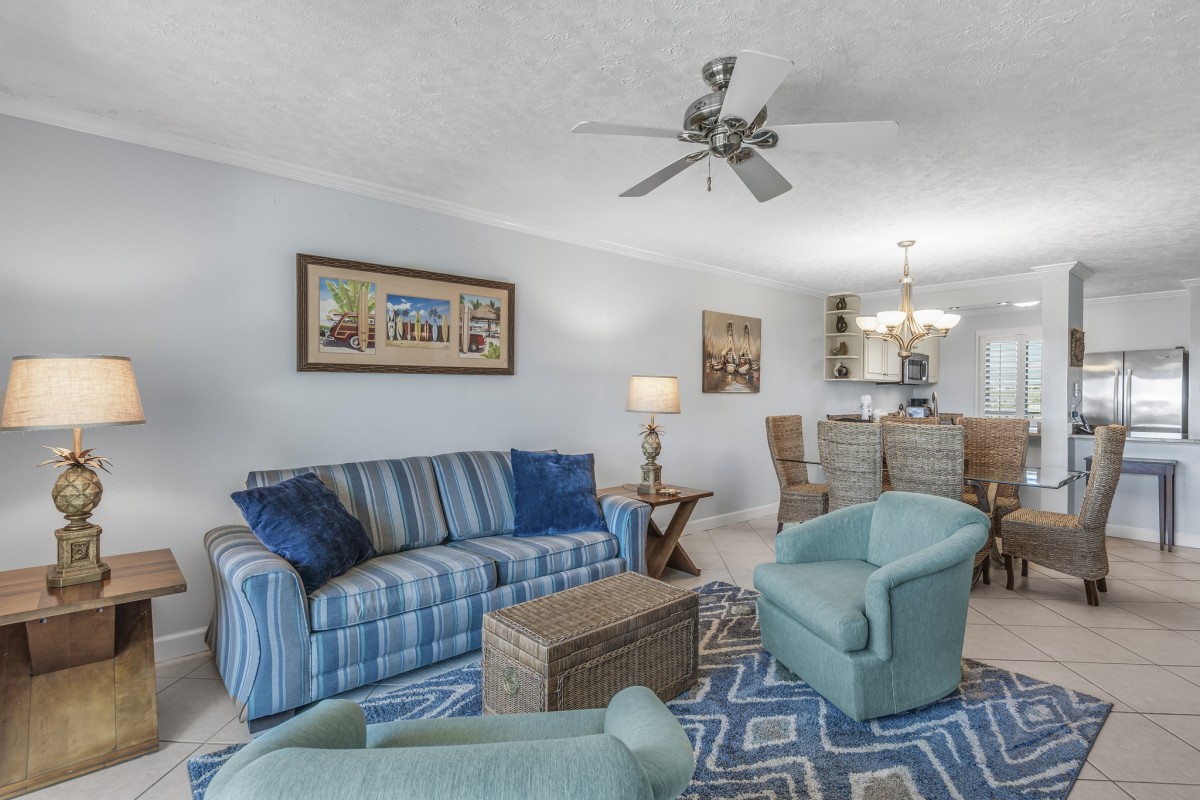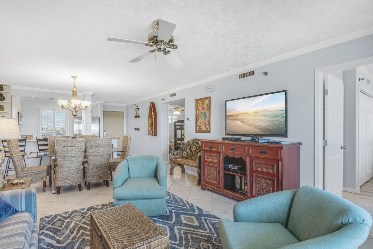 Recently remodeled haven in the heart of Destin, FL. This hip Platinum Unit offers a West View and comfortably accommodates up to 6 guests. Step into our tropical paradise, perfectly situated for quick and easy access to the beach and two inviting pools.