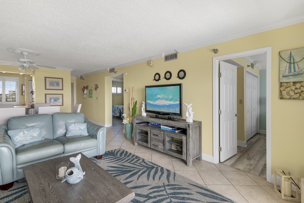 Islander Condo #404 is an East View, Silver Unit that sleeps up to 6 people. Avoid the elevators with easy access to the ground floor and parking lot via the stairs near the condo. Step into our tropical paradise conveniently located for quick and easy access to the beach or your choice of two pools.