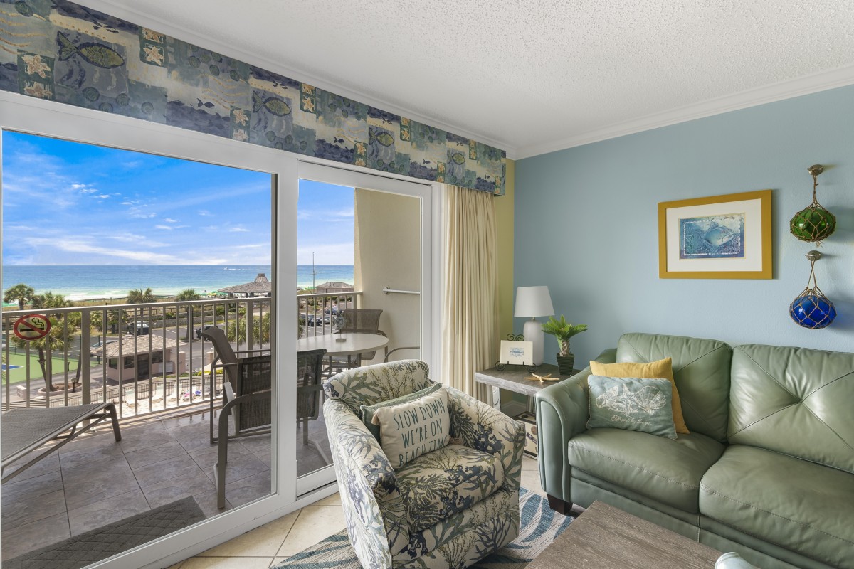 • You will Enjoy Destin's Crystal Green Waters and Sun Sitting In Your 2 Complimentary Beach Chairs with Umbrella During Your Stay.