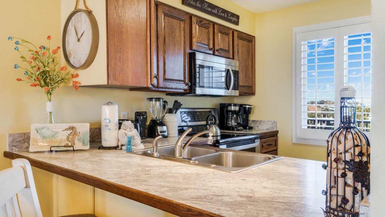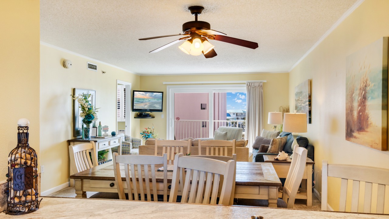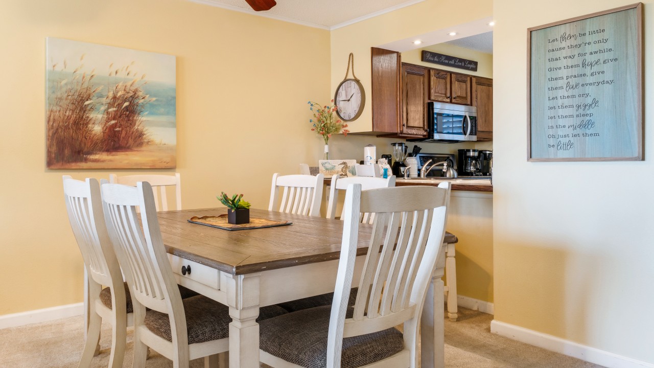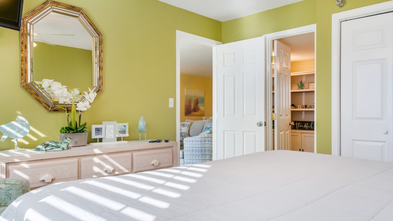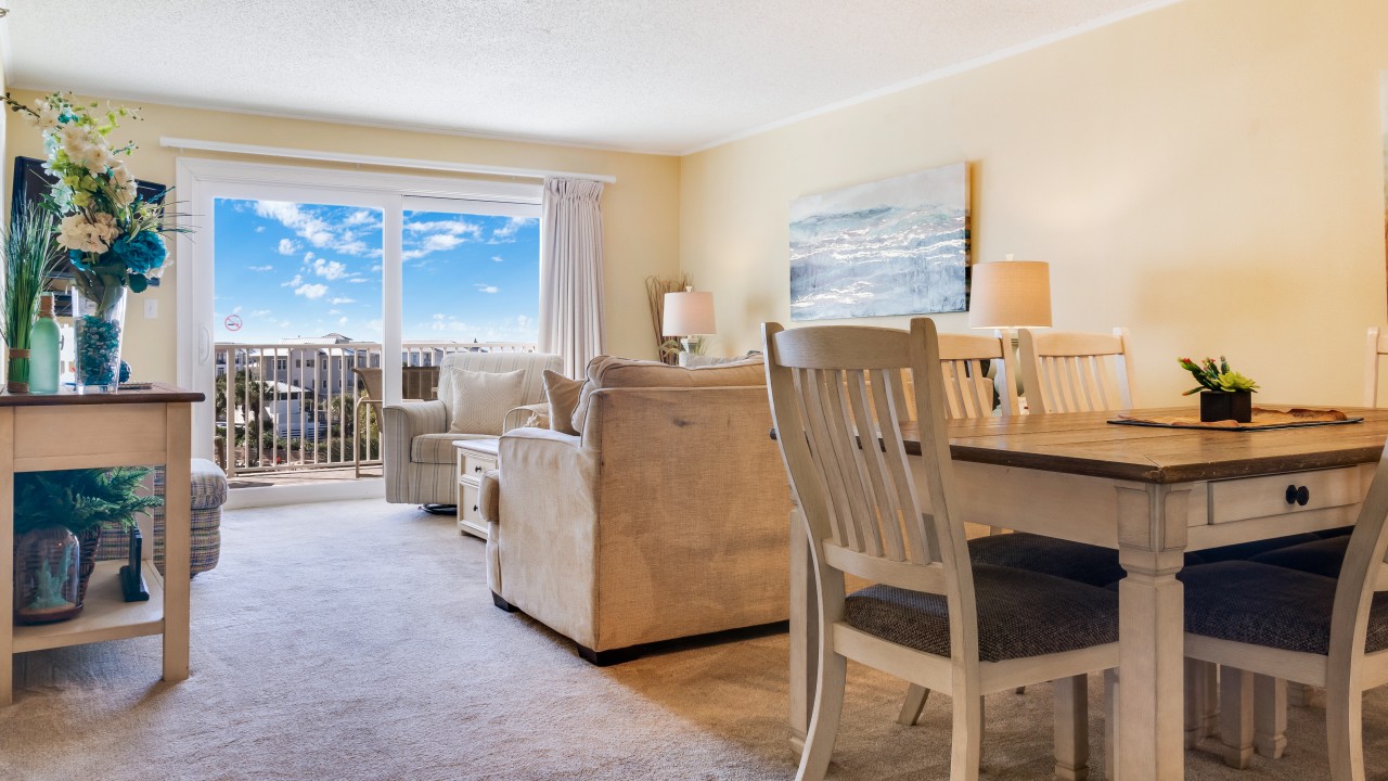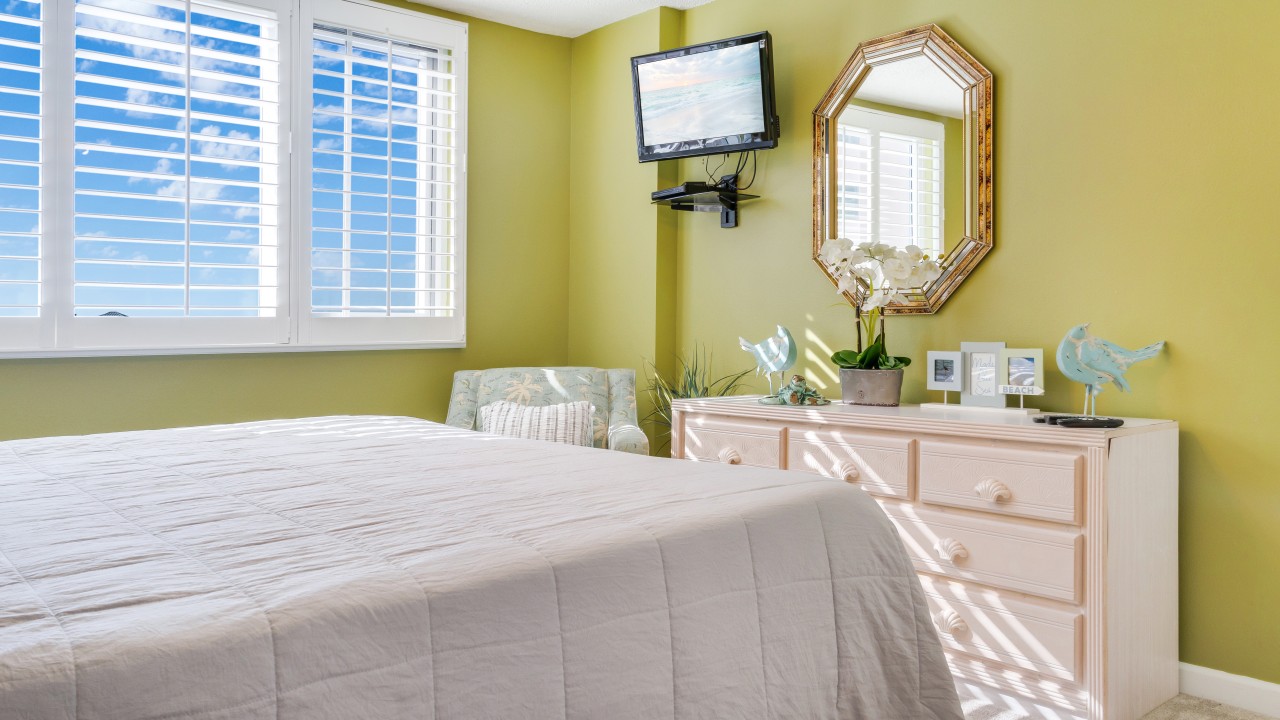 Bedrooms: The master bedroom features a plush king-size bed and a 32" TV, with tranquil beach views to set the perfect tone for relaxation. The guest bedroom offers twin bunks, a full-size bed, and a 24" TV, providing plenty of comfort and flexibility. The living room’s sleeper sofa adds extra sleeping space, ensuring everyone can enjoy their stay.