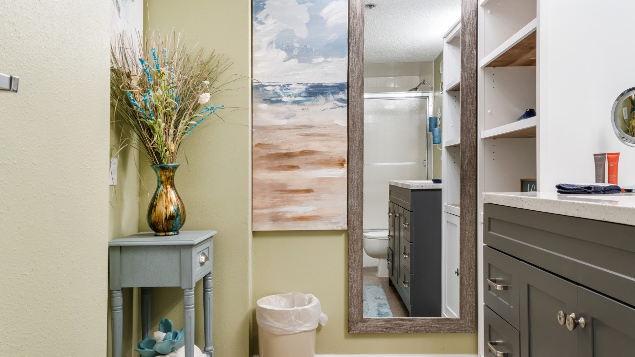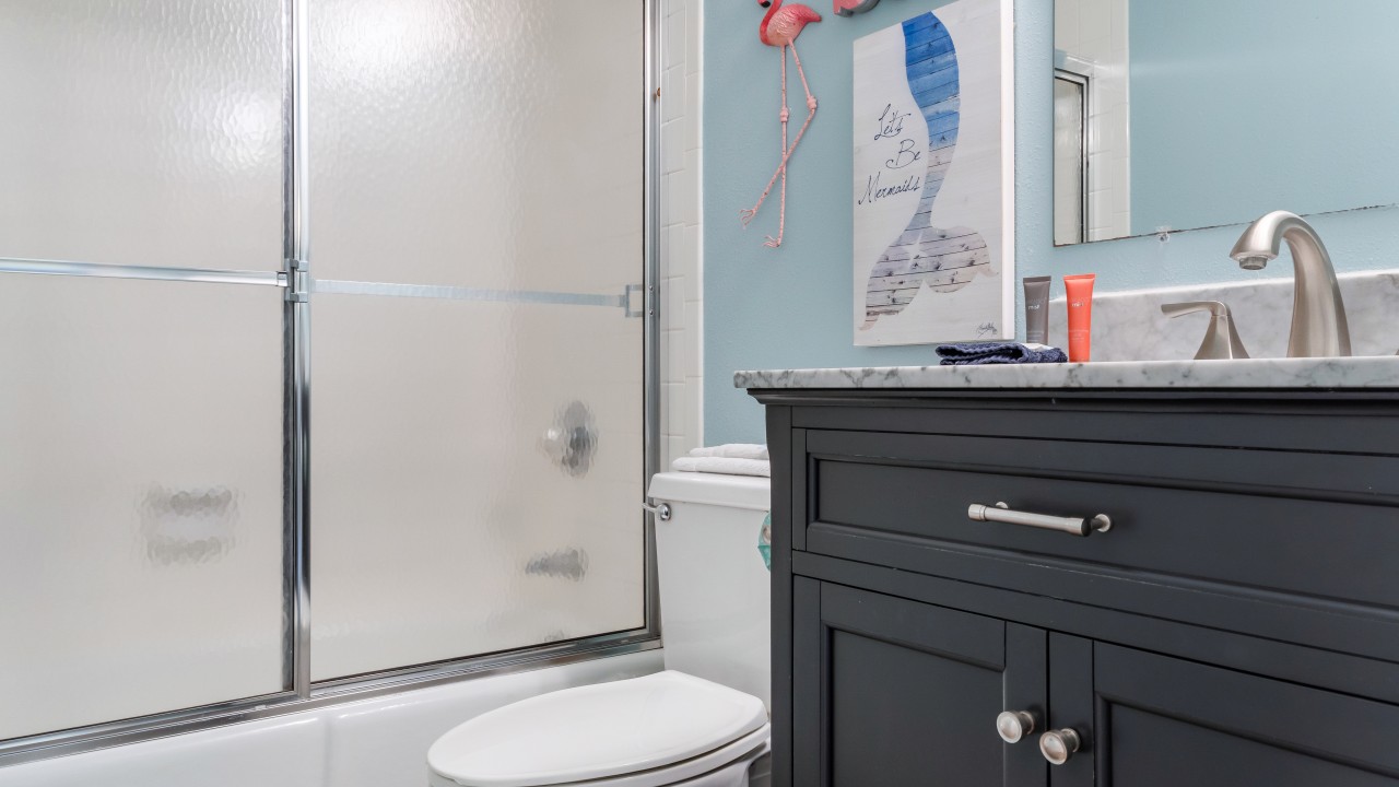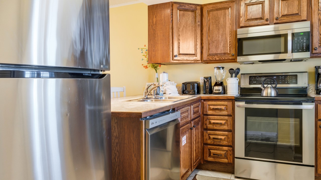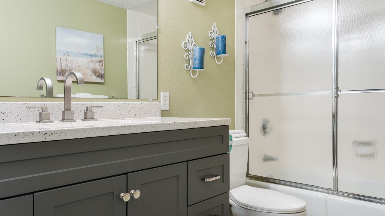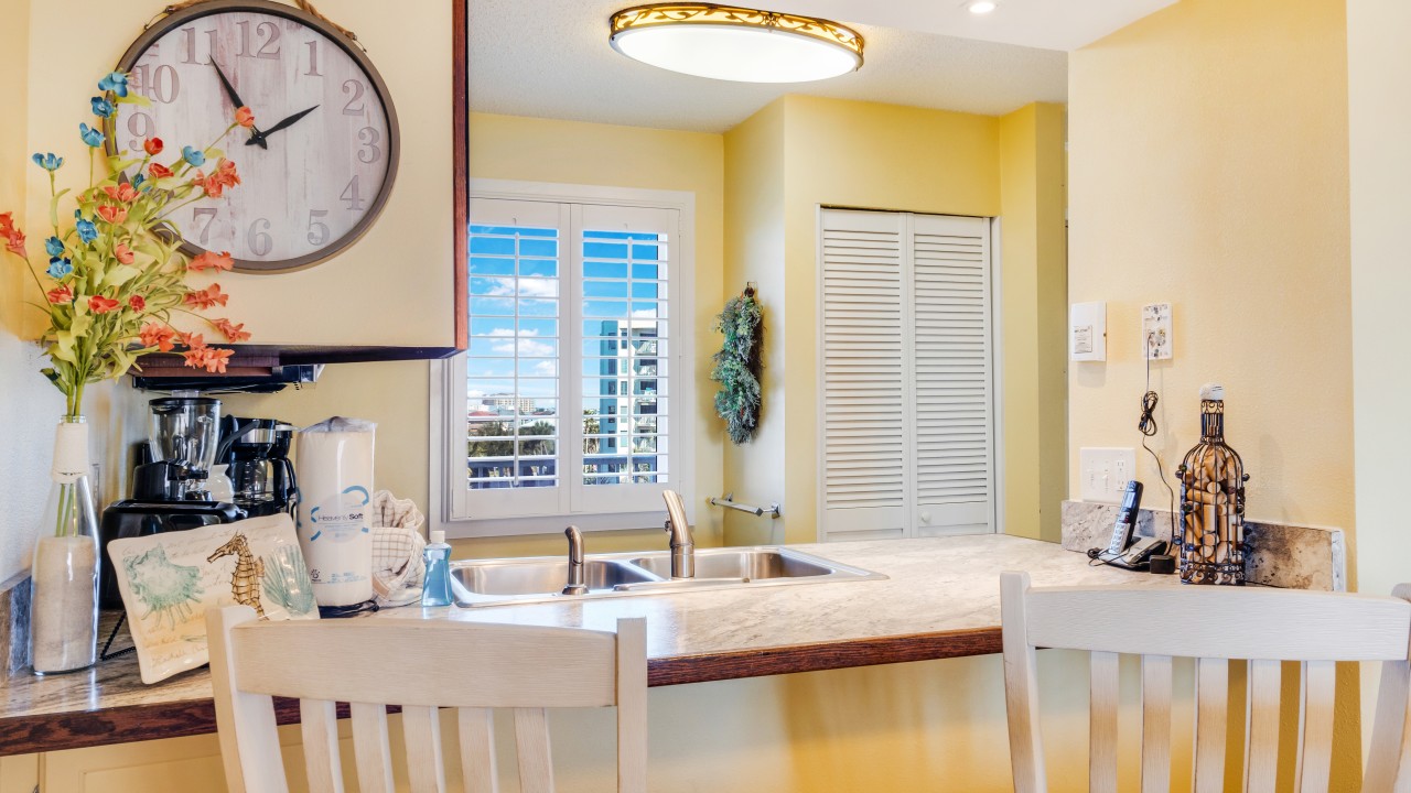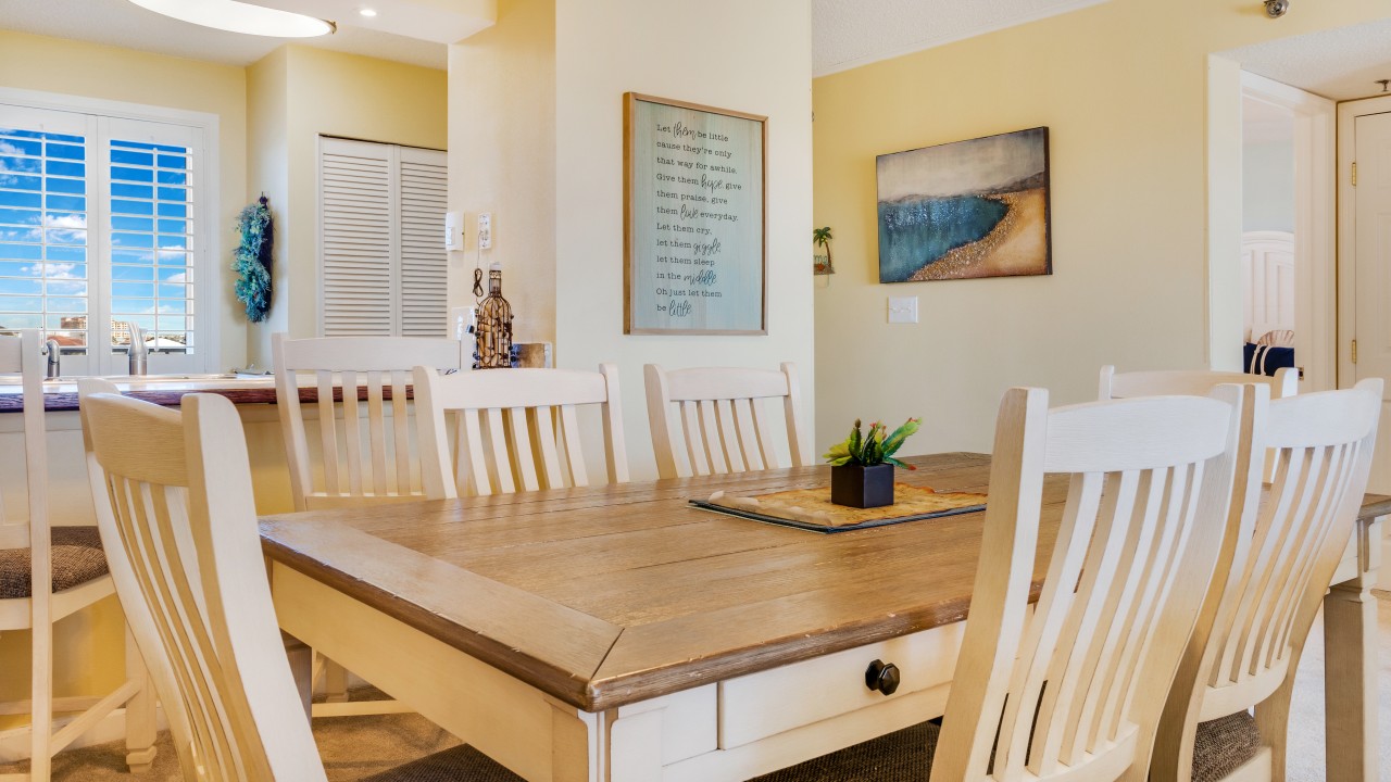 Bedrooms: The master bedroom features a plush king-size bed and a 32" TV, with tranquil beach views to set the perfect tone for relaxation. The guest bedroom offers twin bunks, a full-size bed, and a 24" TV, providing plenty of comfort and flexibility. The living room’s sleeper sofa adds extra sleeping space, ensuring everyone can enjoy their stay.