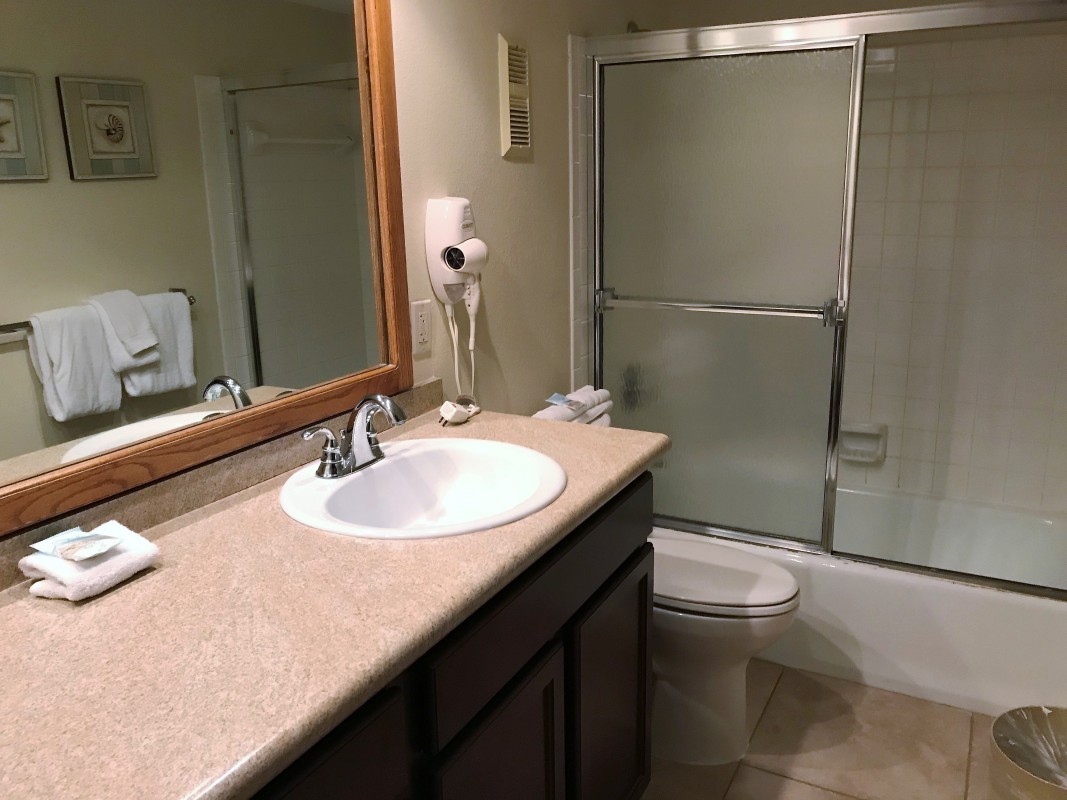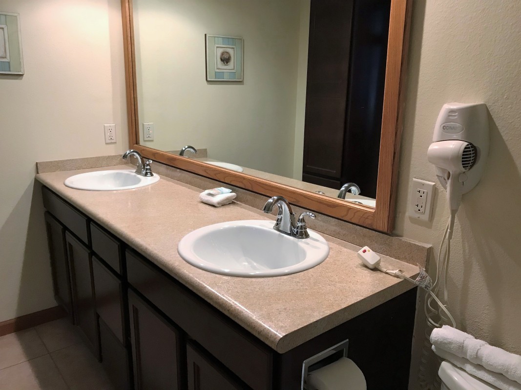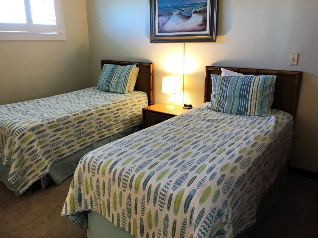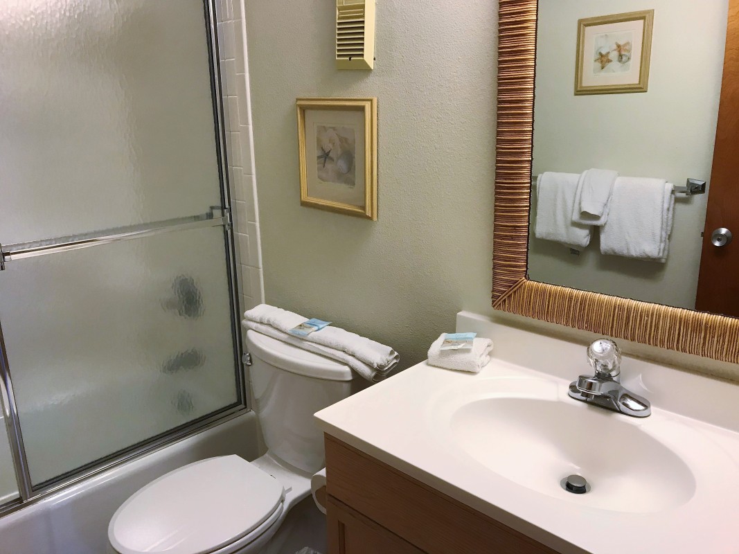Guest Bedroom: The guest bedroom includes two twin-sized beds and a 20” TV for added convenience. The guest bathroom also includes a tub/shower combo.