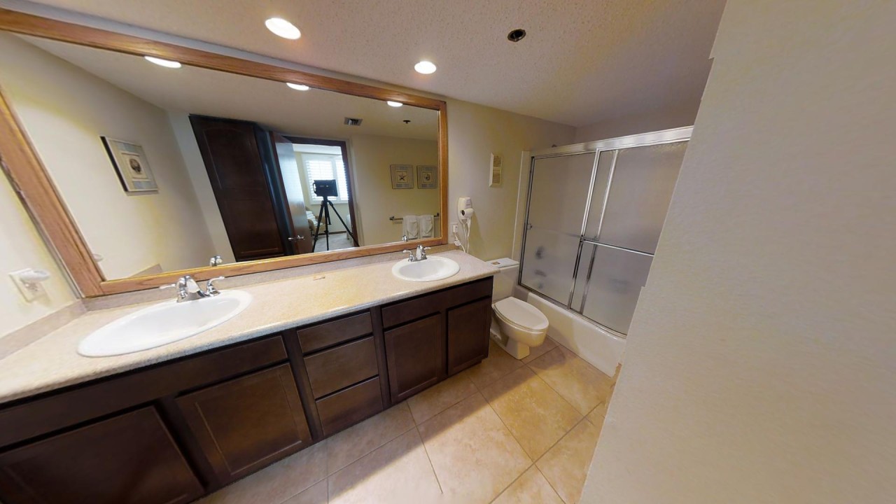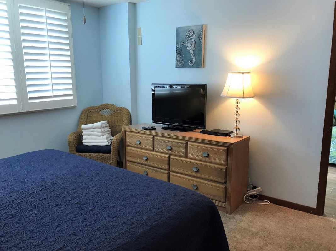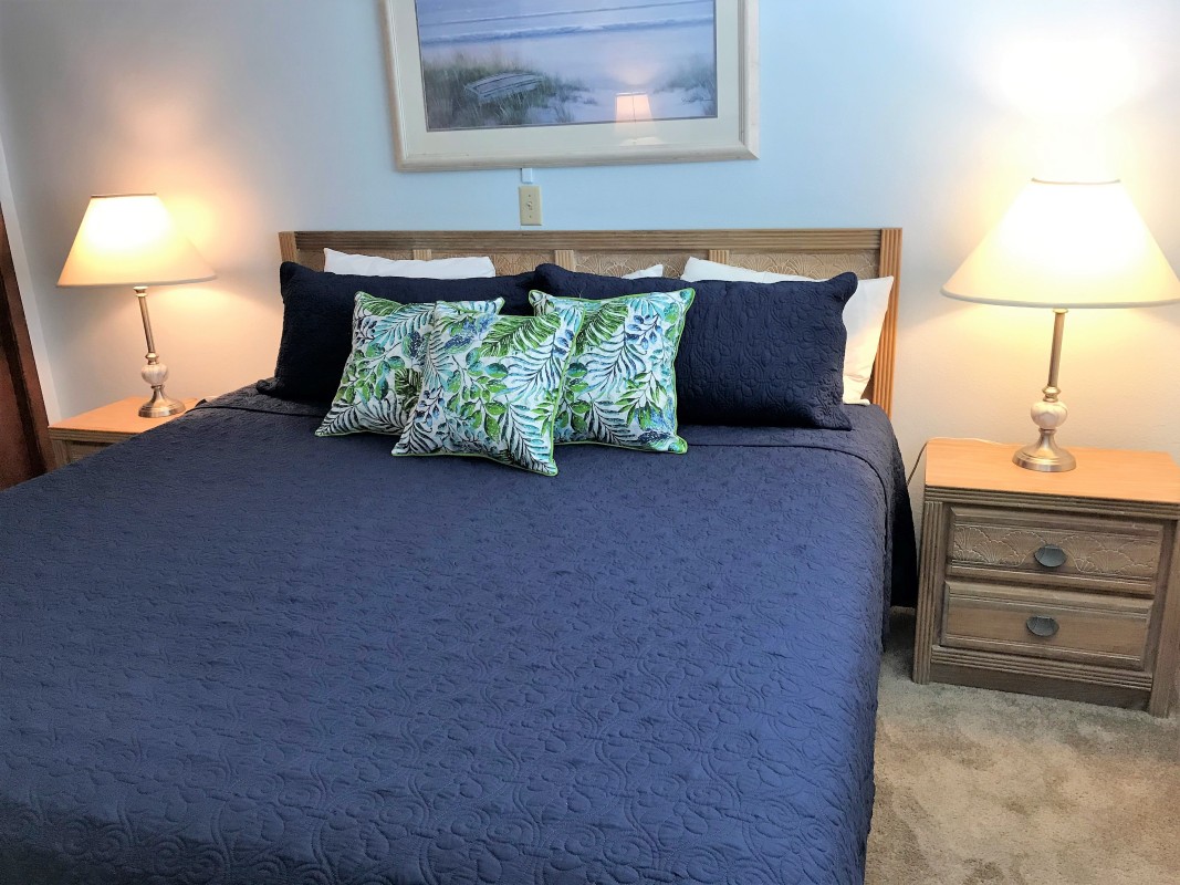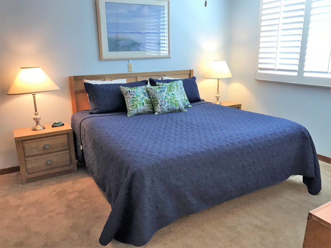 Master Bedroom: The master bedroom offers a king-size bed, a 32” TV, and a streaming Blu-Ray player. The private bathroom features a tub/shower combo for ultimate comfort during your Destin vacation rental stay.