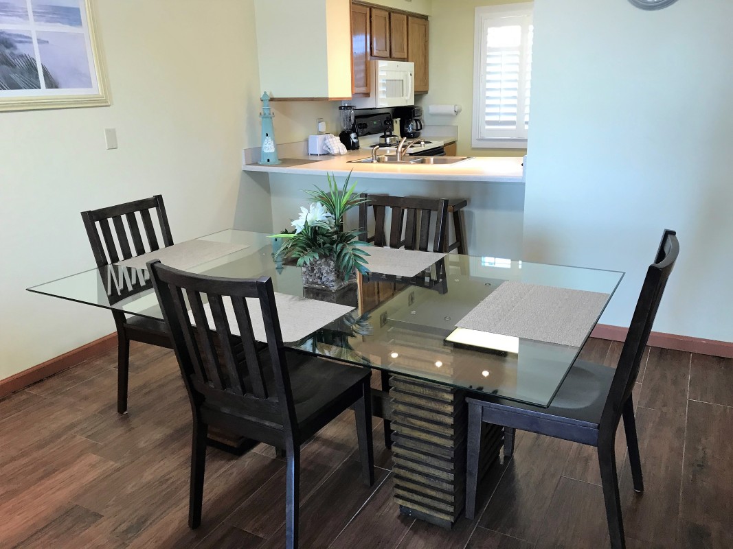 Fully Equipped Kitchen: The fully equipped kitchen comes with everything you need for cooking, whether you’re preparing a quick snack or a full meal. Gather around the new dining table that seats 6 to enjoy your meals together after a day spent at the beach or lounging by the pool.