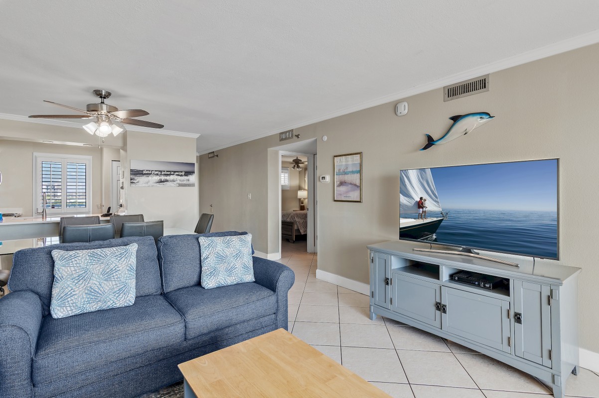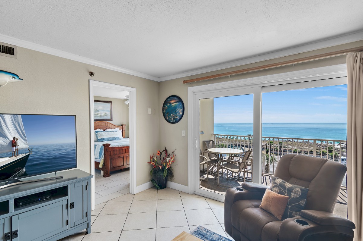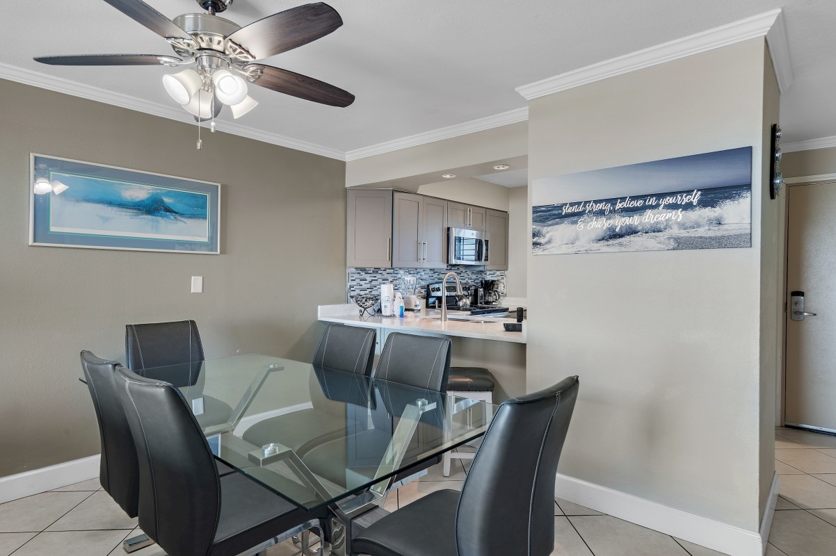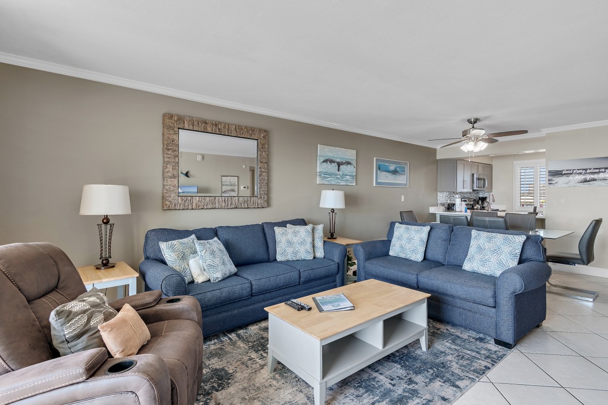 Living Room: When you are ready to unwind after a day at the beach enjoy relaxing in our rental that offers all new furniture, including a dining table and chairs. Share those late-night moments in living room watching your favorite TV show on our 55” smart TV. For additional sleeping arrangement we have a new sofa sleeper in the living room. Take a moment for yourself and enjoy early mornings with your favorite coffee on the private balcony.