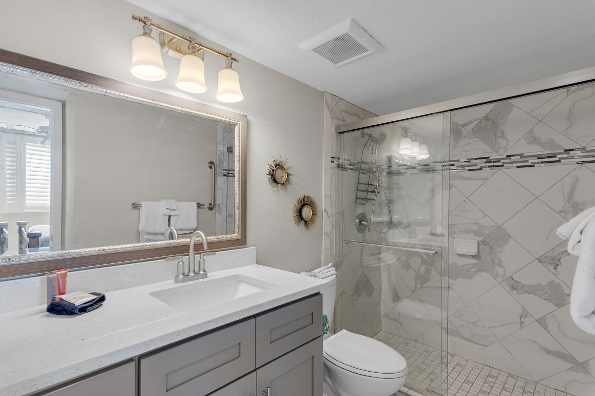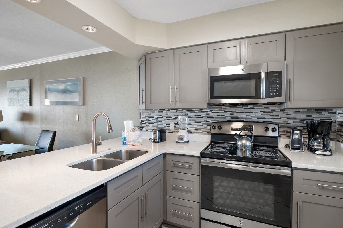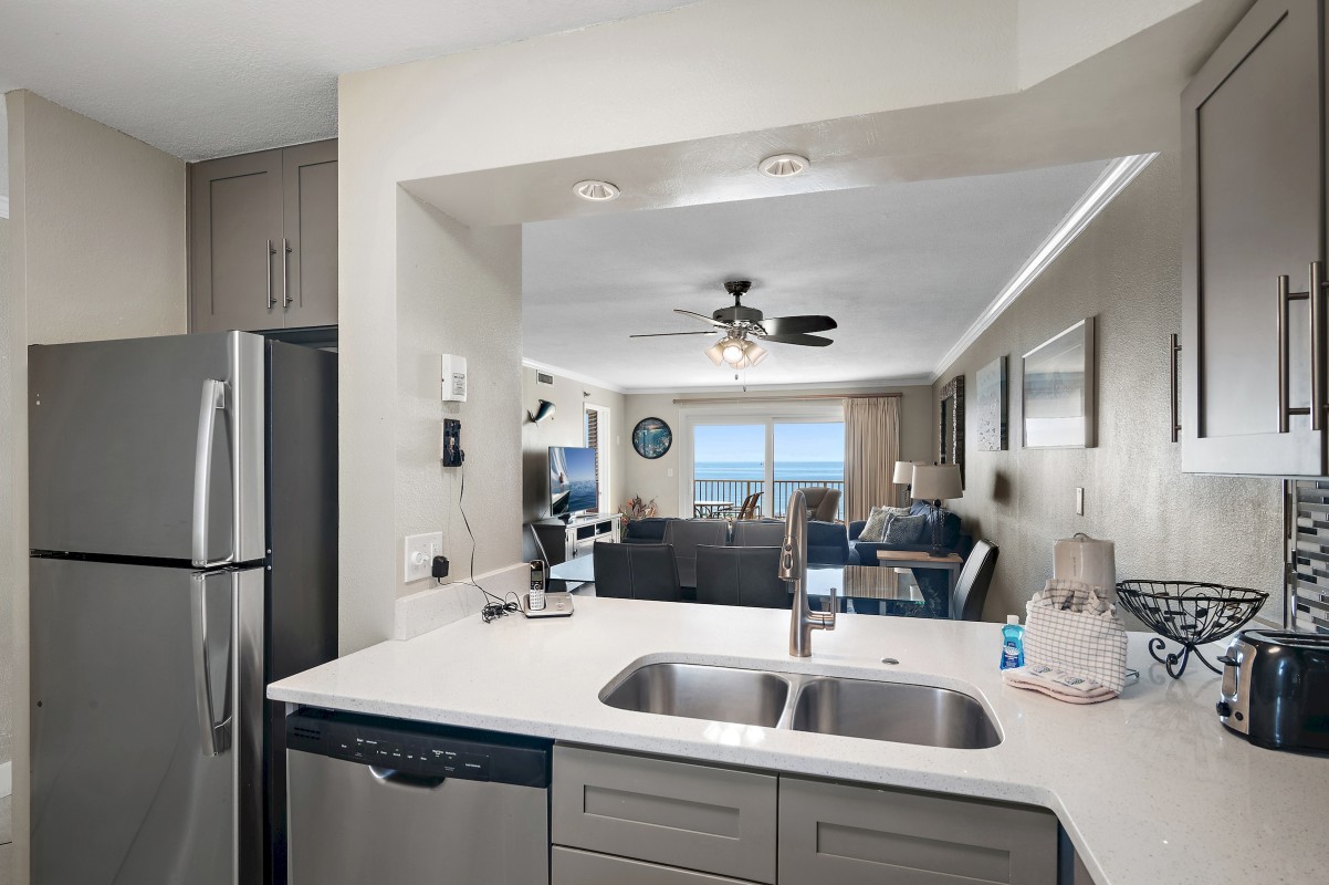 Are you ready for a wonderful vacation experience? This is exactly what you are looking for your beach getaway! Stunningly remodeled our vacation rental is updated unit features luxurious ceramic tile throughout, with a sleek kitchen boasting quartz countertops, brand-new cabinets, and stylish fixtures.