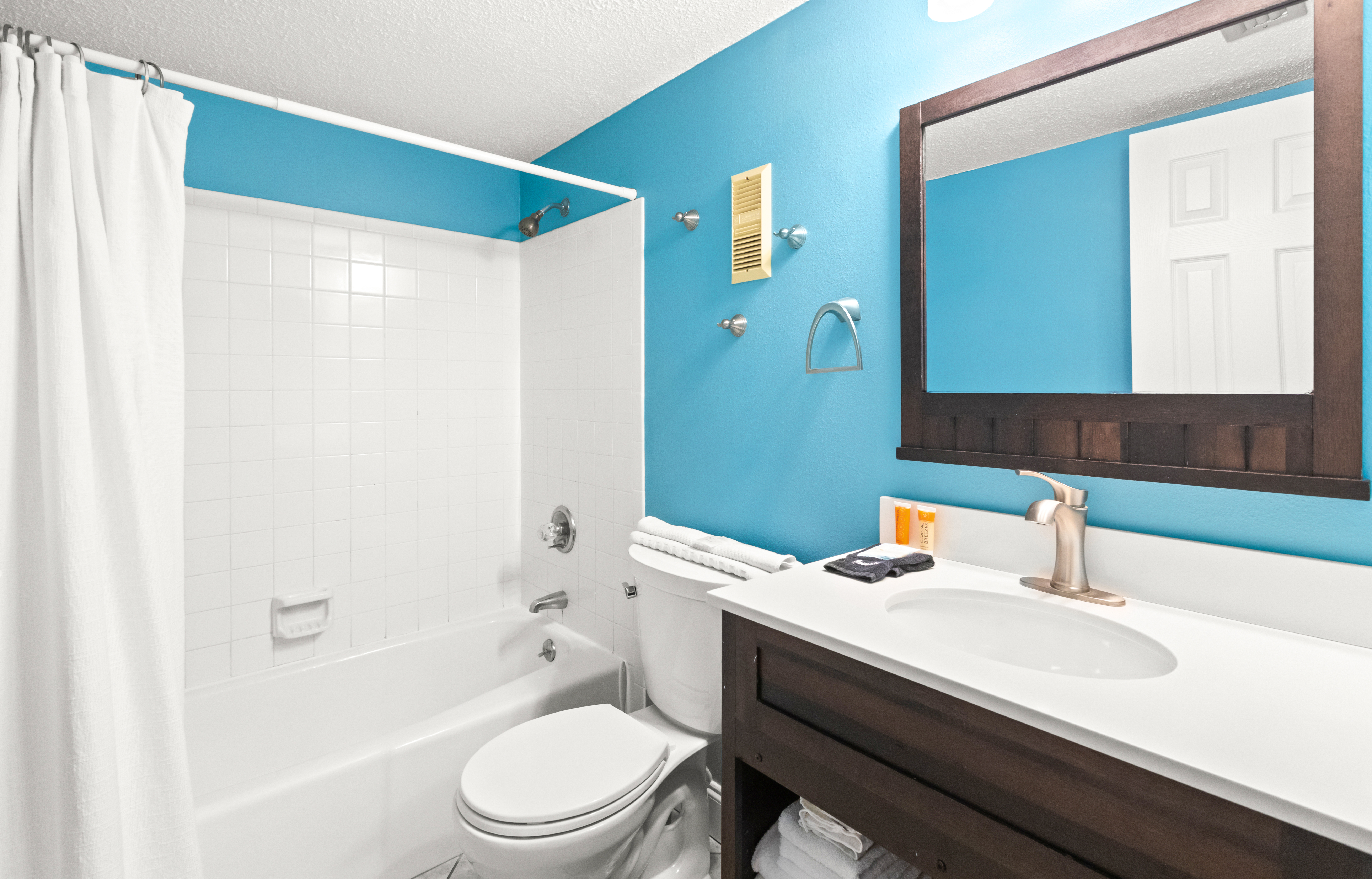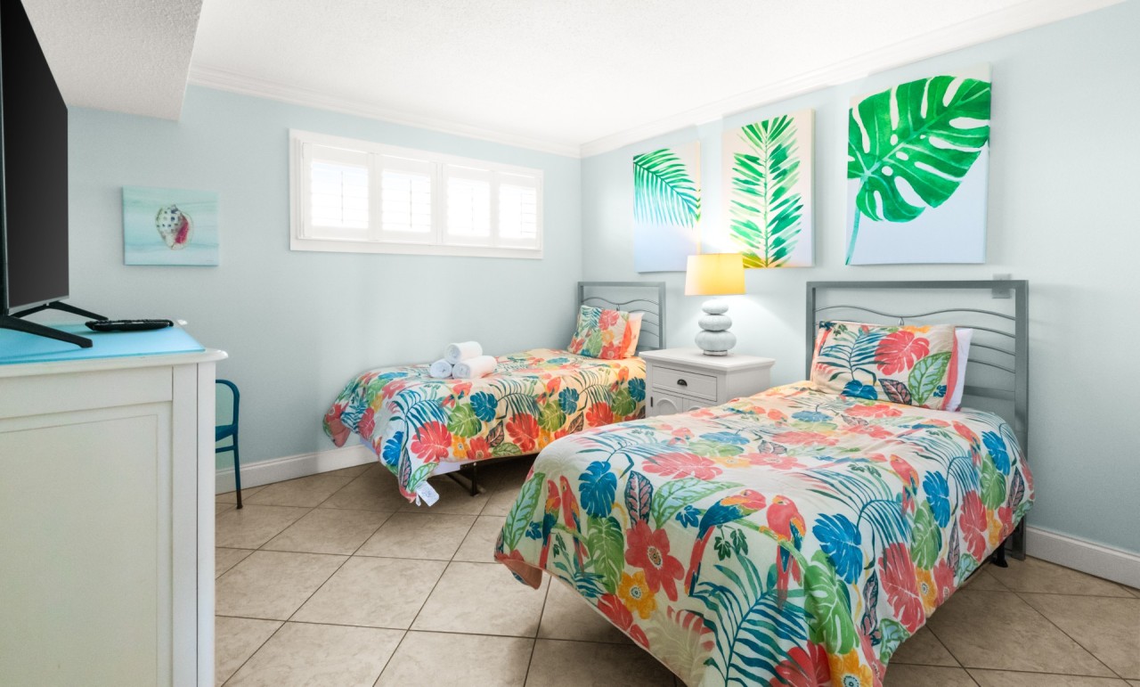 Bedrooms: Spacious master bedroom boasts a luxurious king bed, ensuring restful nights and relaxation, complete with a 50” Smart TV. The cozy guest bedroom features two twin beds, ideal for additional guests, and has a 50” Smart TV. Perfect for a great night sleep after an exciting day visiting Destin’s area activities & attractions.