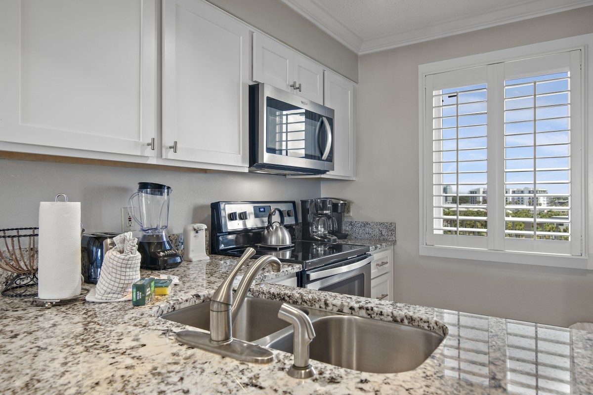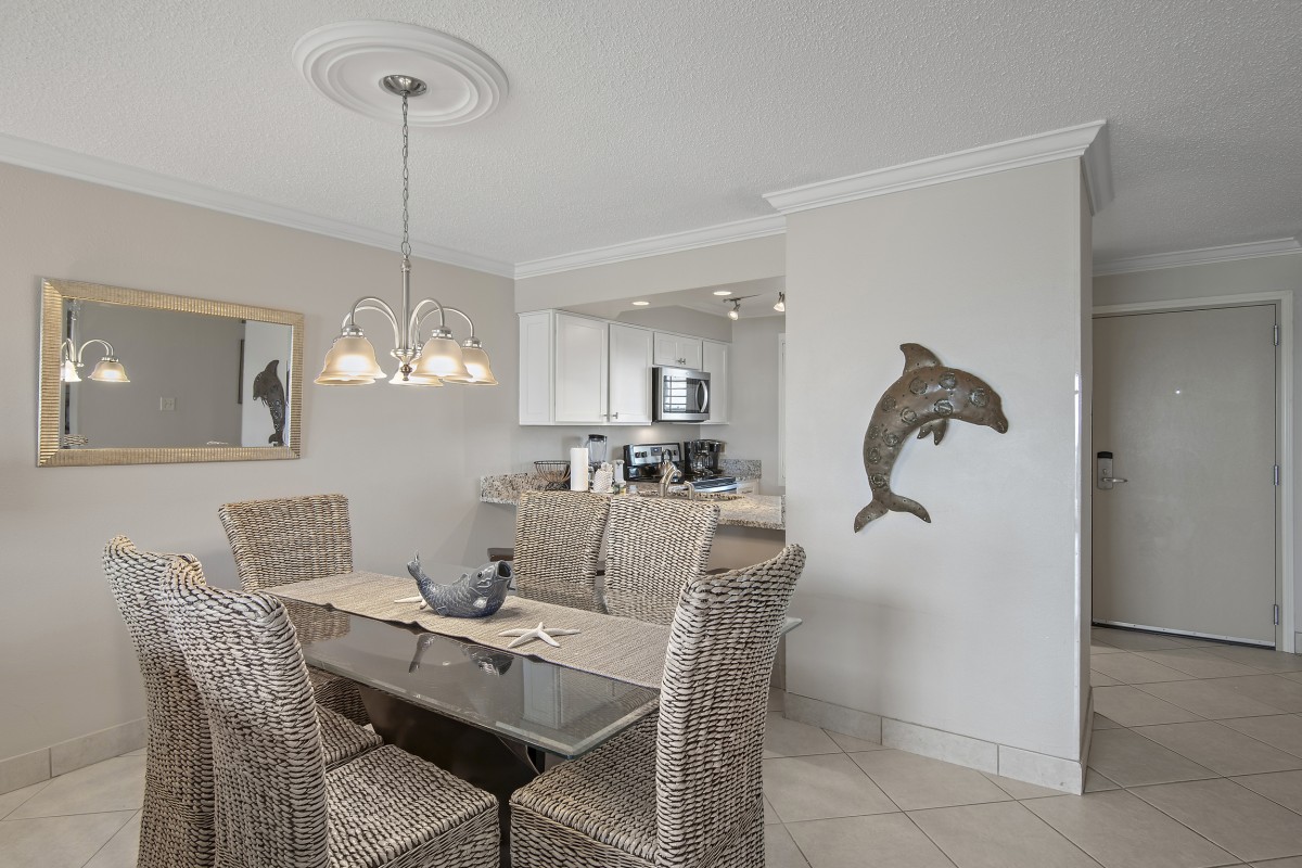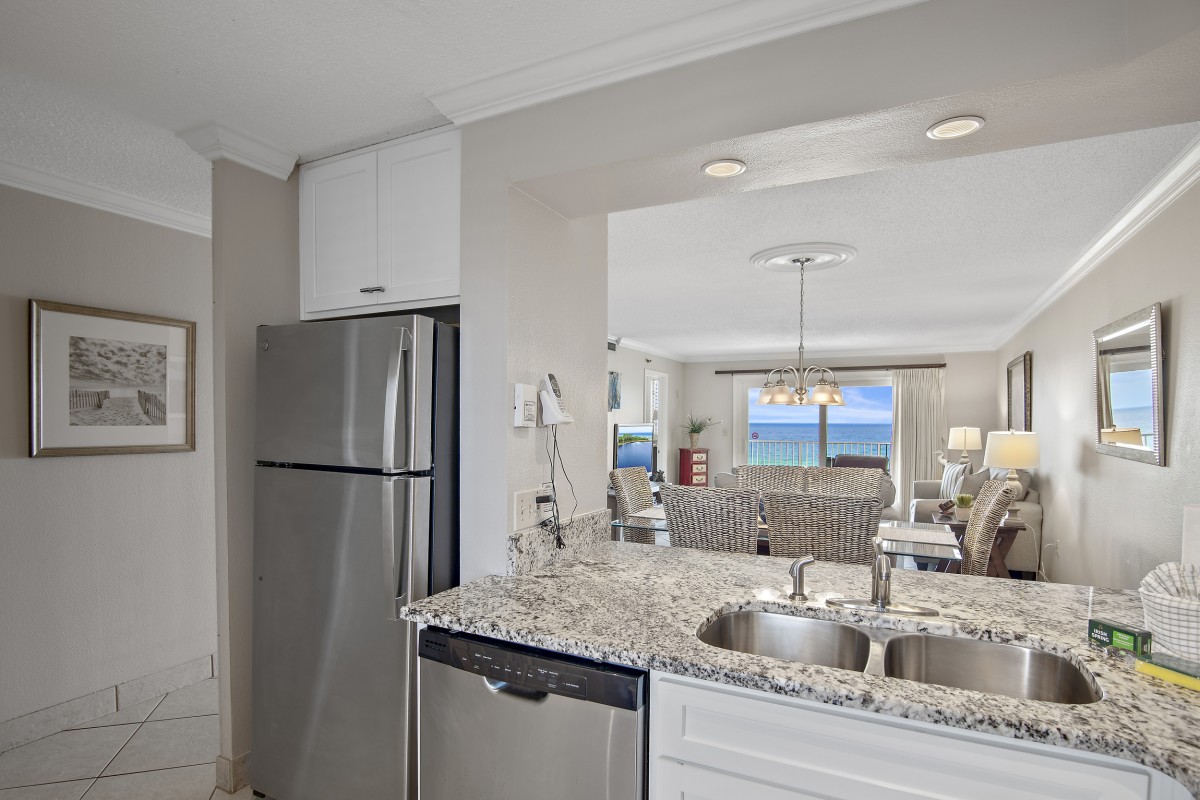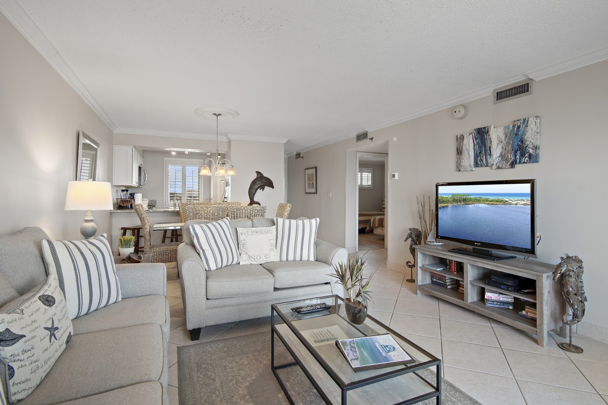 Enjoy our vacation rental that we beautifully remodeled with stylish decor, updated flooring, and granite countertops throughout. Relax in style & comfort while you are vacationing in Destin. Our rental offers a spacious master bedroom, guest room, and a cozy sleeper sofa in the living area, fully equipped kitchen, and a perfect fit for up to six guests. Tucked away on Holiday Isle, but within a 5-minute drive to the heart of Destin! Unwind on the white sand beach, take a dip in the sparkling Gulf, or relax on your private balcony with breathtaking views. Enjoy free beach service with two chairs and (1) umbrella each day of your stay, high-speed Wi-Fi, access to two pools and hot tubs, tennis courts, BBQ grills, and more.