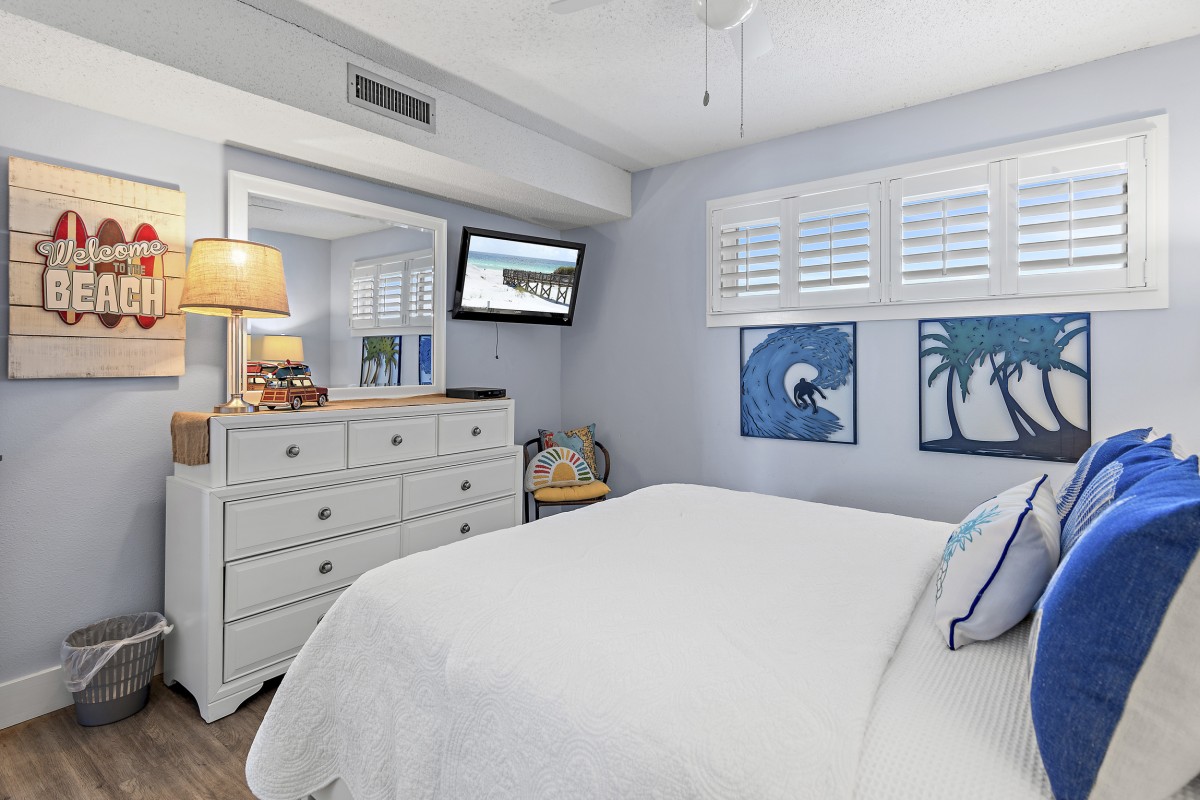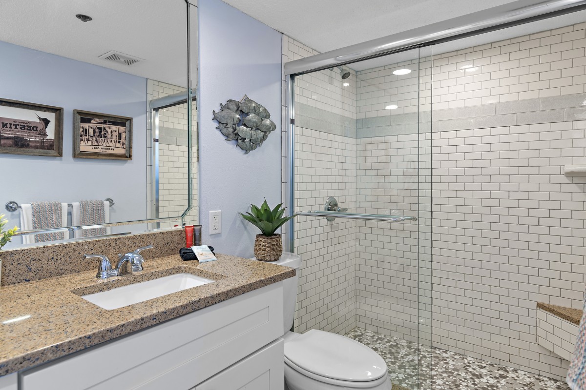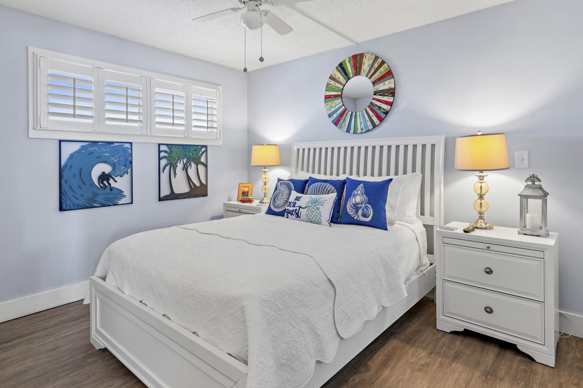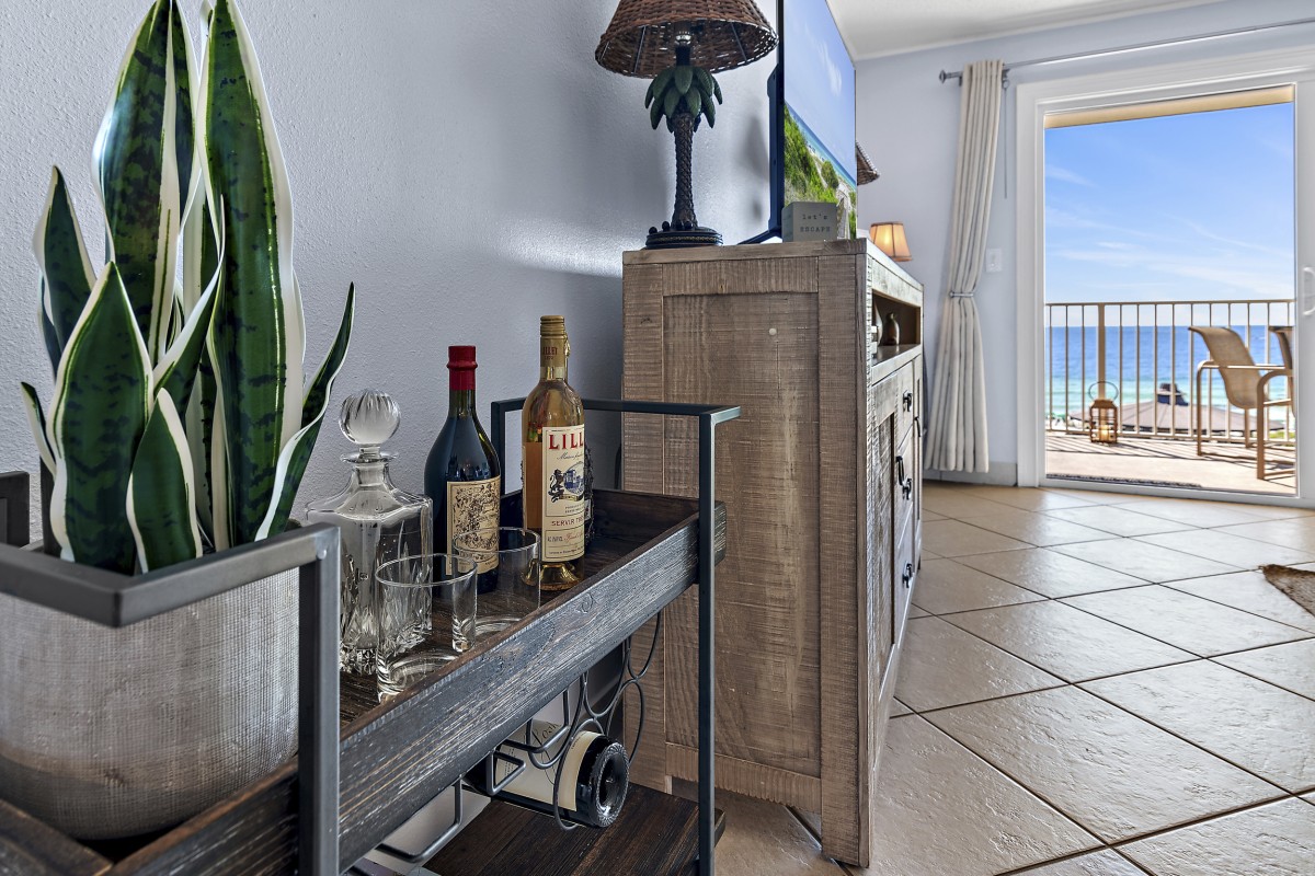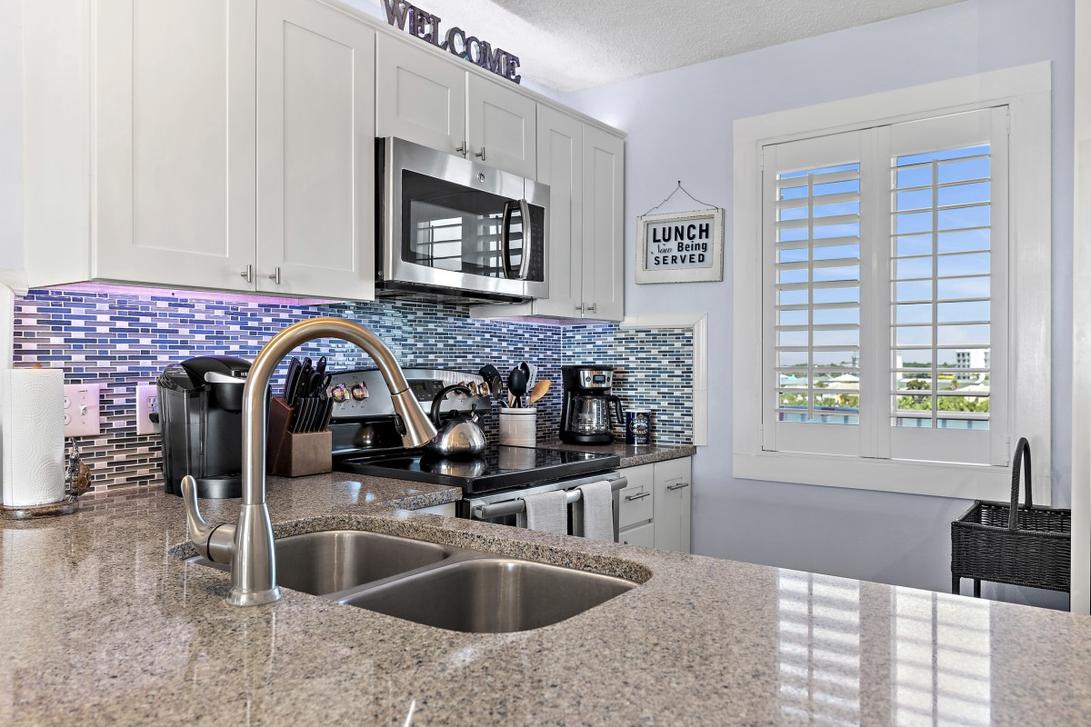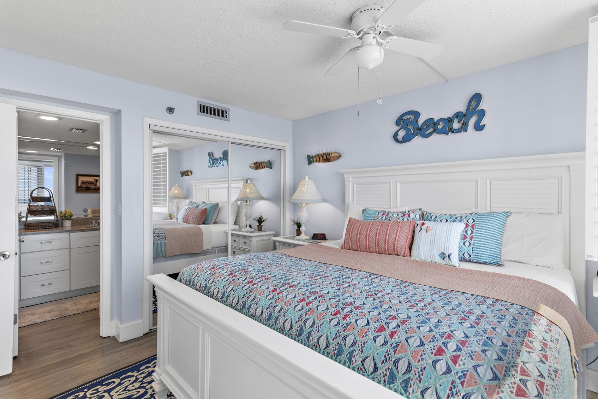 Unit 607 is completely renovated with unobstructed beach/water views, new furniture in both bedrooms, dining room, and living room including a leather Lazy Boy recliner. Other updates include: keyless entry, relocated refrigerator to improve sightlines (not many units offer this), quartz countertops throughout, stainless steel appliances, Keurig coffee maker, ceiling fans, large flat screen TVs in every room, smart TV in living room, vinyl plank flooring and mirrored sliding closet doors in both bedrooms, new glass shower doors, new sliding glass balcony door leading to panoramic views, and an oversized walk-in shower in the master bath.