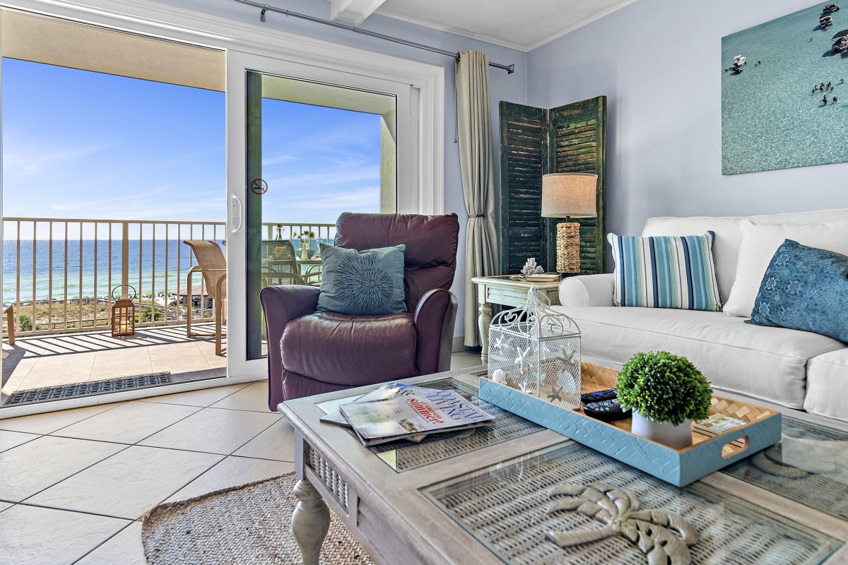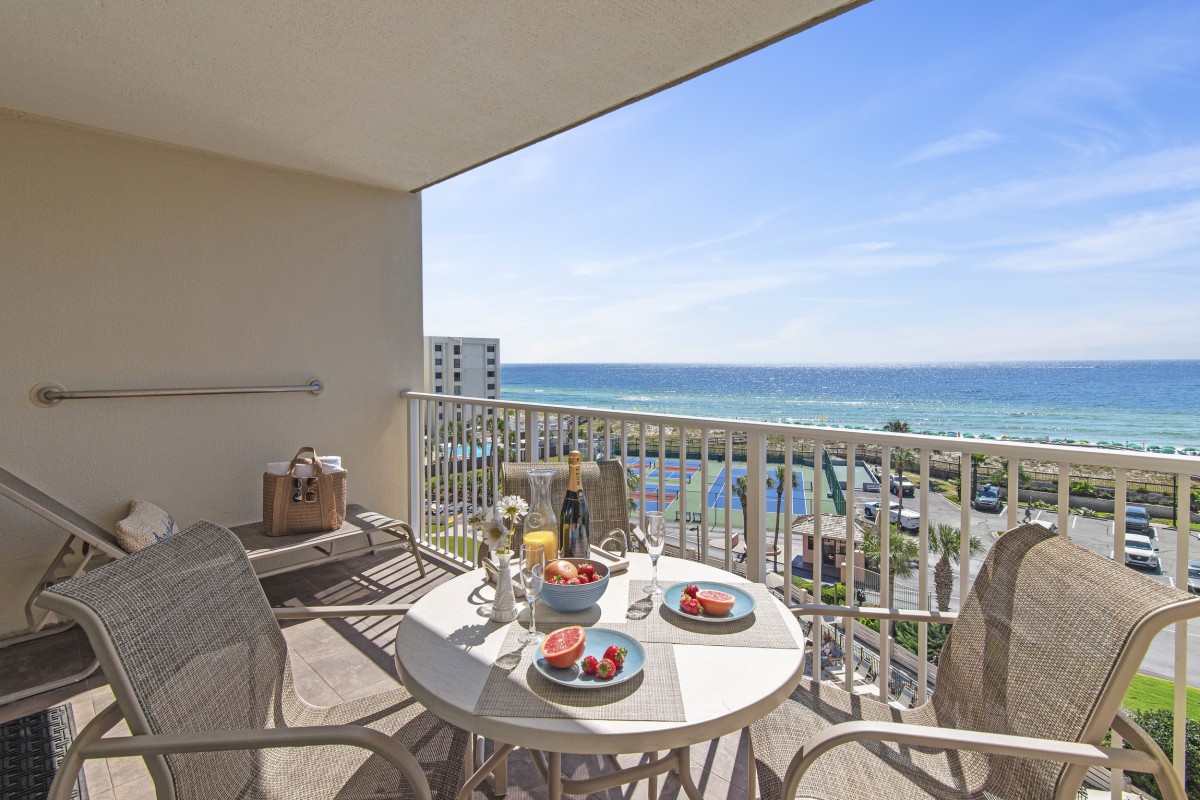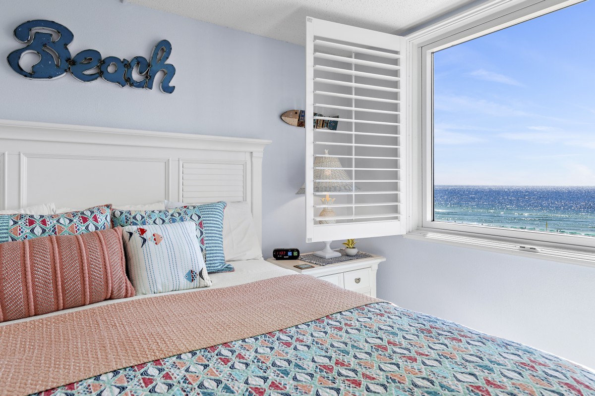 The Islander Resort Unit 607 is located on secluded Holiday Isle in Destin, Florida along the beautiful Emerald Coast. This beach front, east-side, Platinum graded, vacation condo rental accommodates up to 6 people with a king in the master bedroom, queen in the guest bedroom, and a premium mattress sleeper sofa in the living room. Destin's sugar-white sand beach and emerald waters are just steps away and can also be enjoyed with a direct and panoramic view of the beach and Gulf from your private balcony.