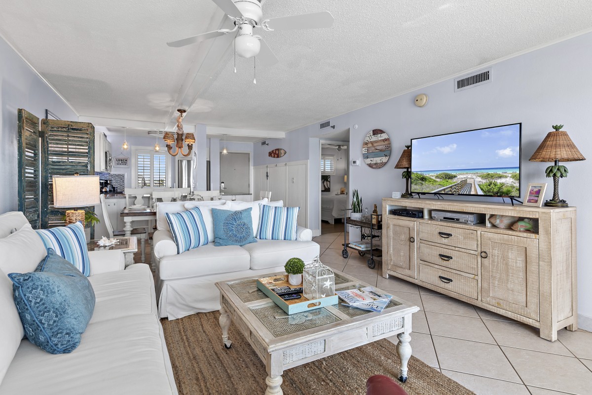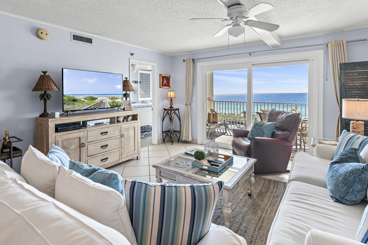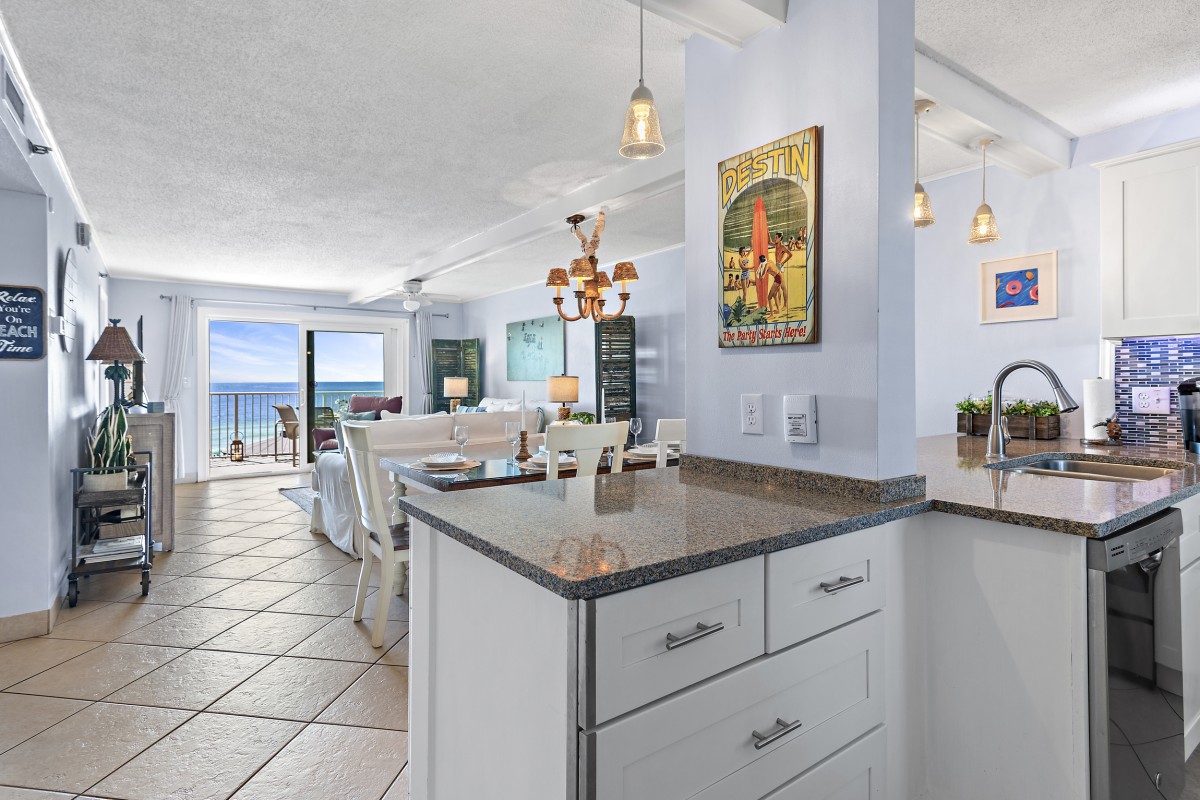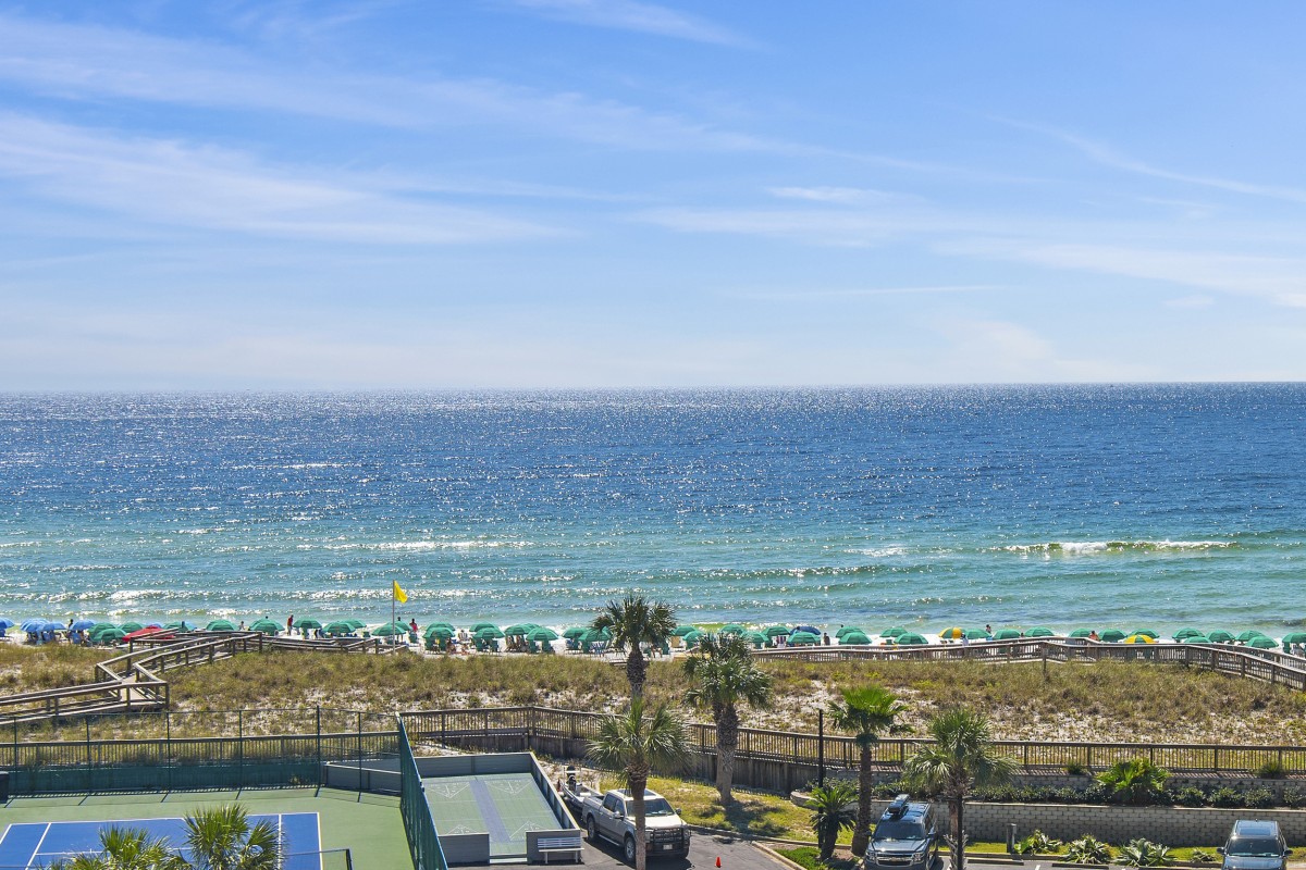 The Islander Resort Unit 607 is located on secluded Holiday Isle in Destin, Florida along the beautiful Emerald Coast. This beach front, east-side, Platinum graded, vacation condo rental accommodates up to 6 people with a king in the master bedroom, queen in the guest bedroom, and a premium mattress sleeper sofa in the living room. Destin's sugar-white sand beach and emerald waters are just steps away and can also be enjoyed with a direct and panoramic view of the beach and Gulf from your private balcony.