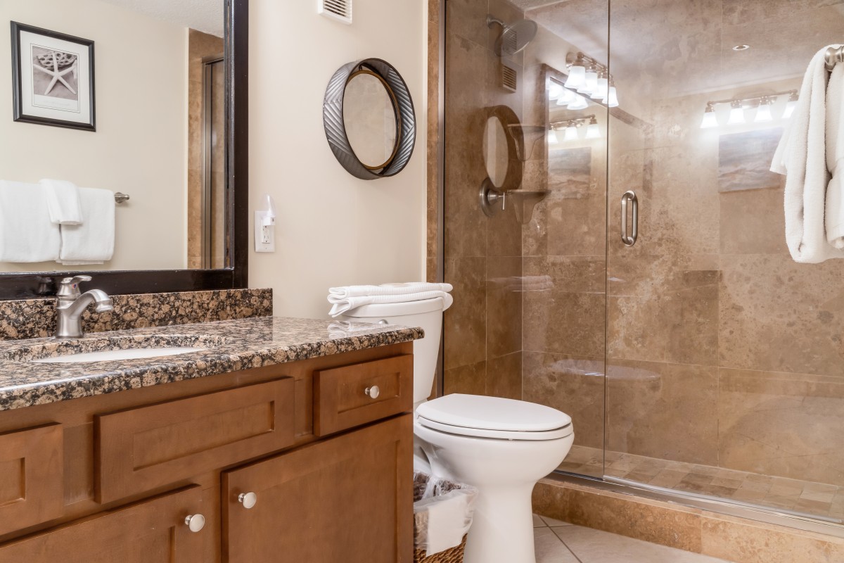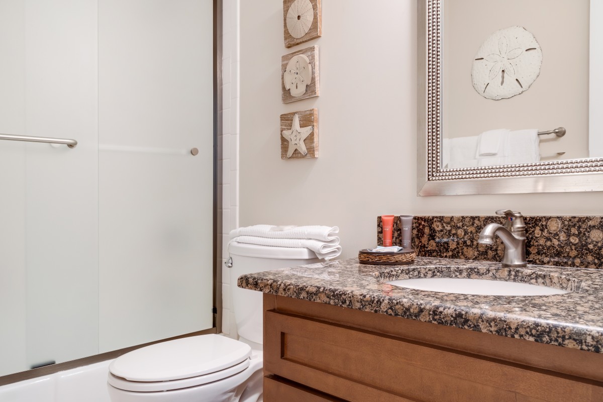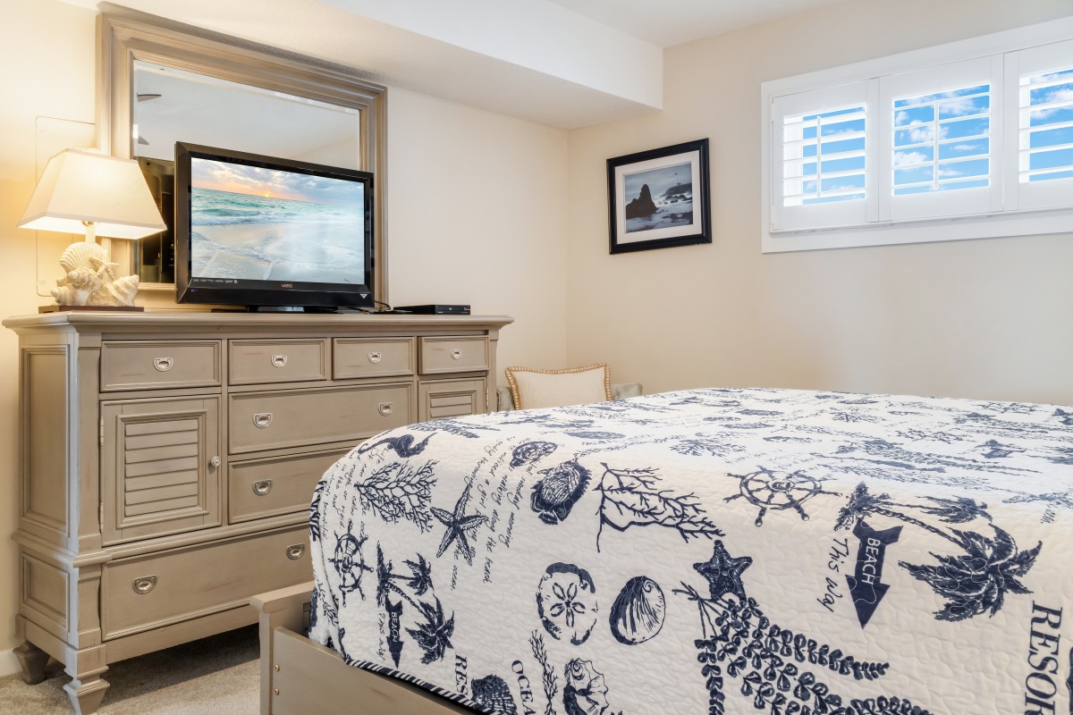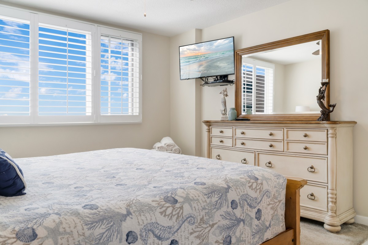 Bedrooms/bathrooms: Beautifully decorated, the master has new furniture, new bedding, and a king size bed with a private bathroom with a walk-in shower. The guest room is furnished with new furniture, new bedding, décor, and a queen size bed. Both bedrooms have large flat screen TVs. The bathrooms are fully updated and spacious.