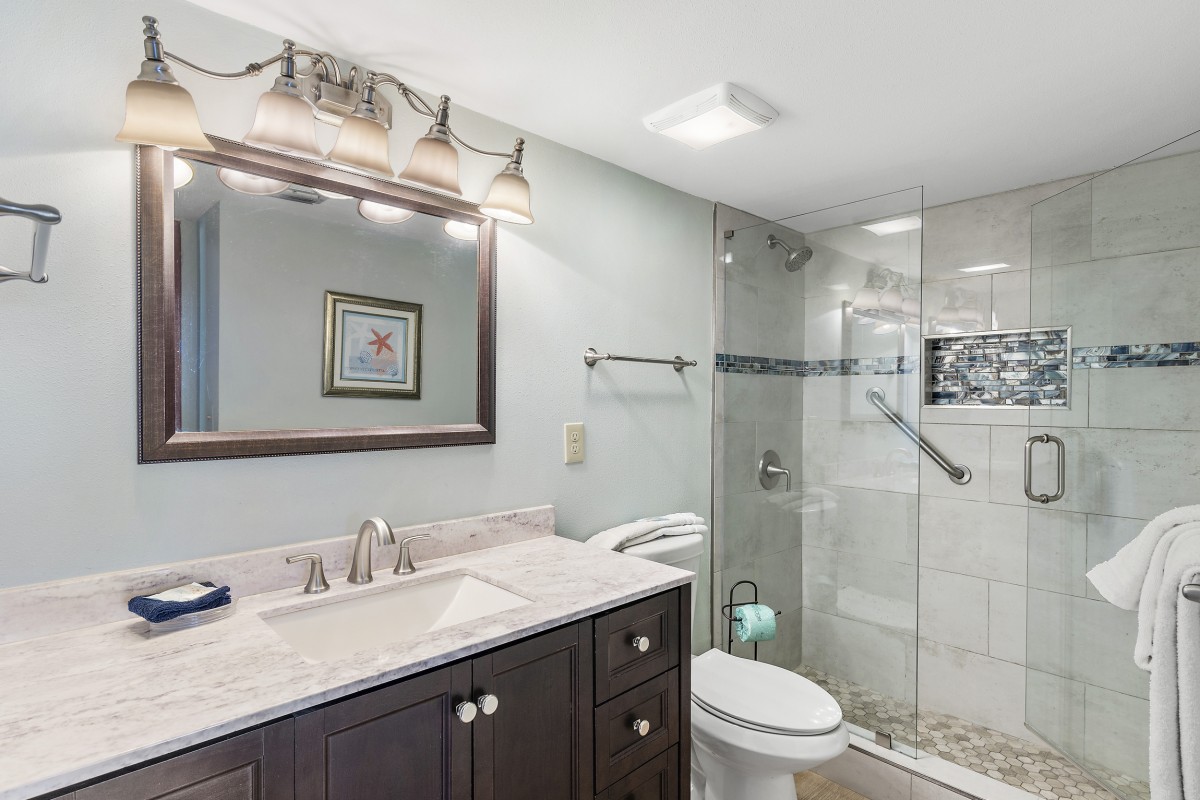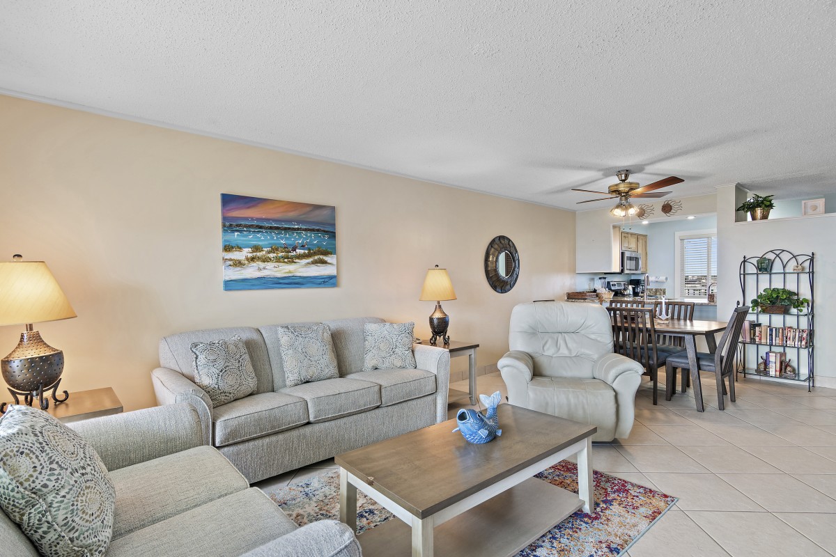 Living Area & Balcony: After a day being on the beach enjoy relaxing in the living that features a new sofa, loveseat, and chair, and sofa sleeper - all centered around a 48" TV. Step onto the private balcony and take a moment to admire the stunning views of Lake Christina and its surrounding wildlife. What an incredible way soak in the natural beauty of Destin while sipping your morning coffee or enjoying a sunset cocktail.
