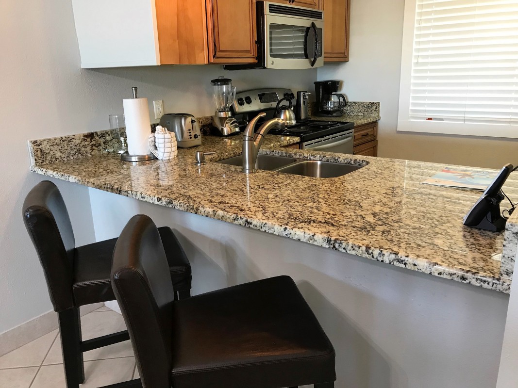 Kitchen: The kitchen is newly remodeled with modern features, including granite countertops, stainless steel appliances, and all the cooking utensils you’ll need for a home-cooked meal or quick snack.