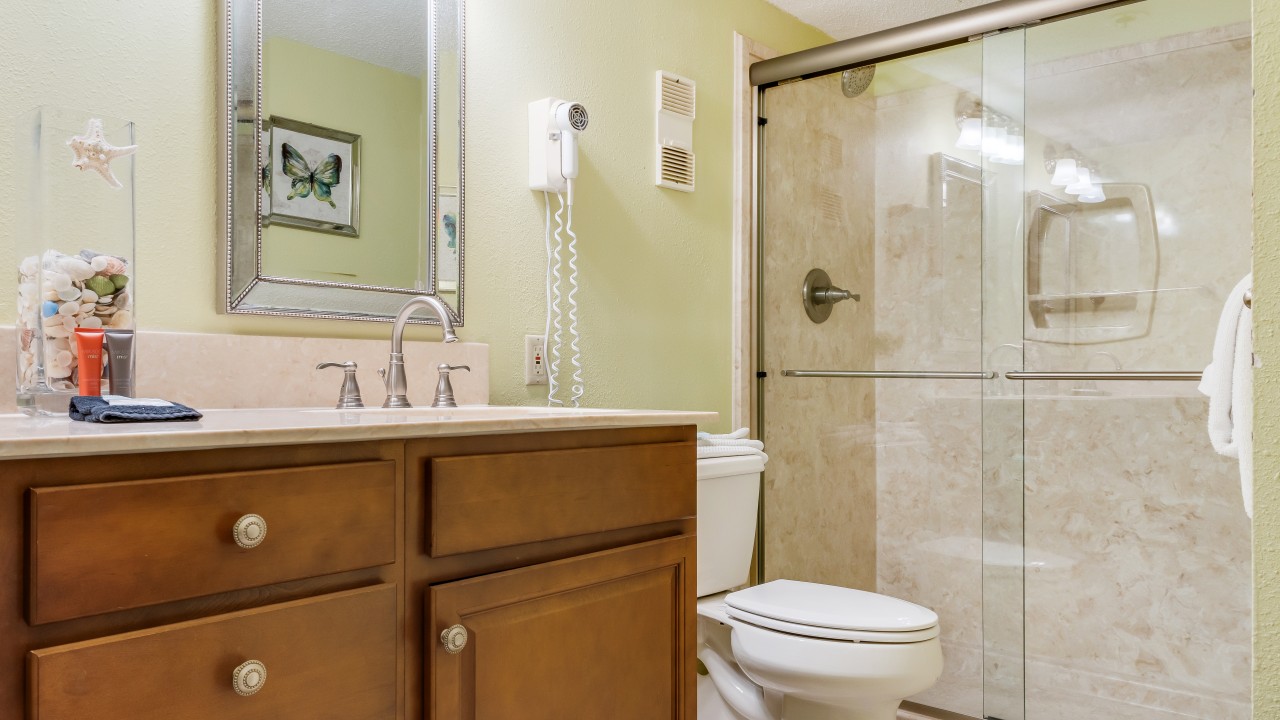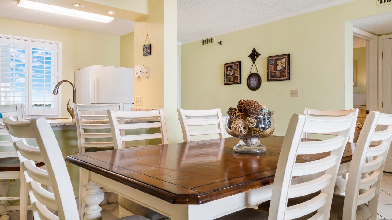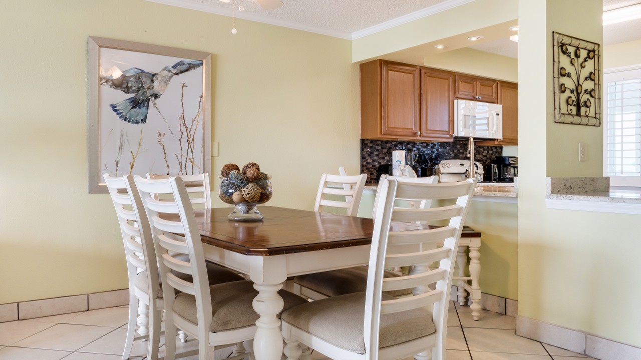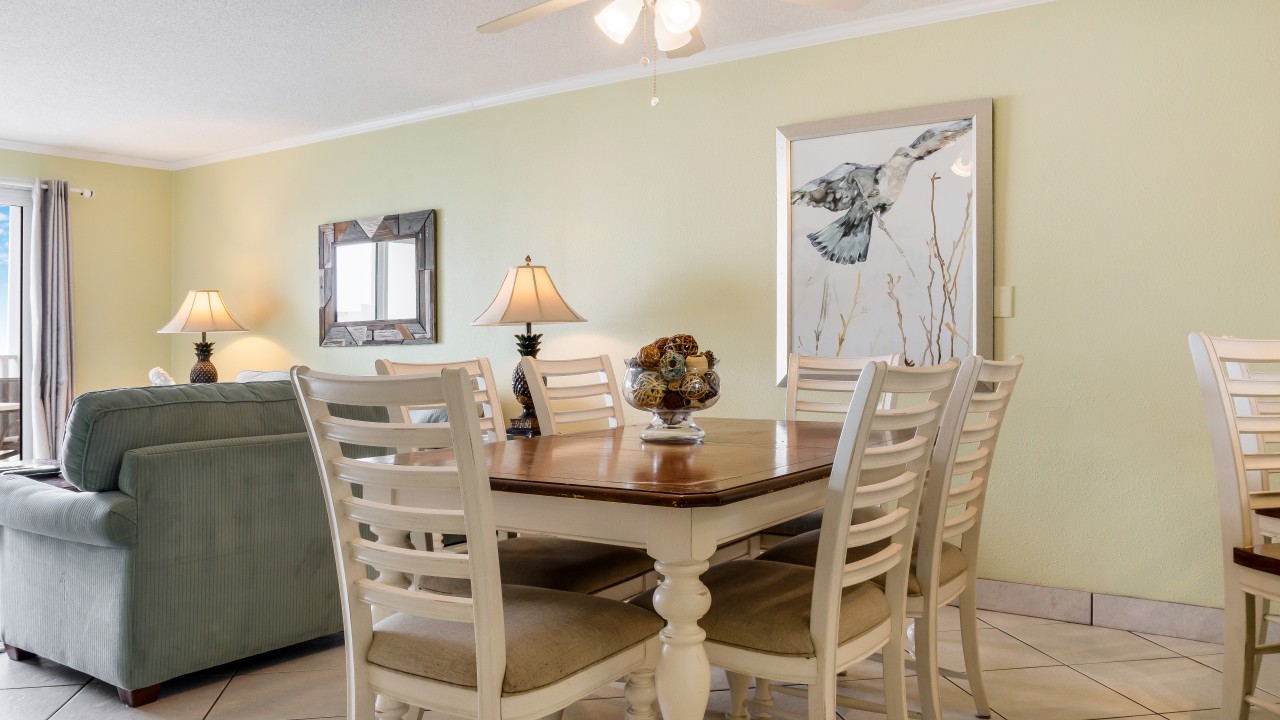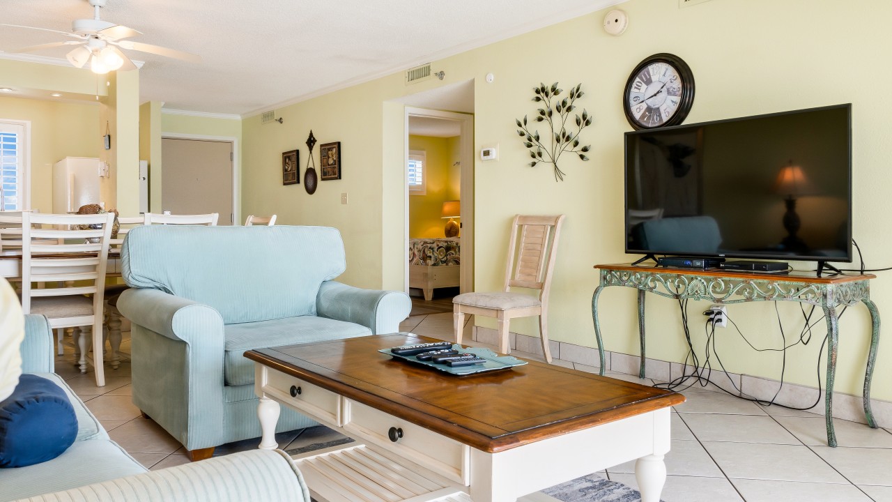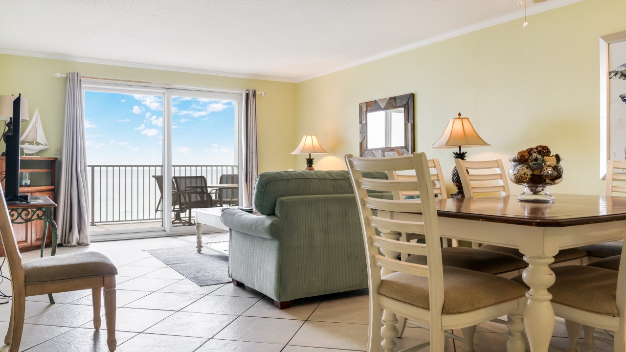 Living Room, Dining Room, and Private Balcony: The living room offers comfortable seating, including a sleeper sofa and a 42” TV, ideal for relaxing after a day on the beach. The dining area is perfect for family meals, while the private balcony provides breathtaking views of Destin’s Emerald Coast, perfect for soaking in the coastal breeze.