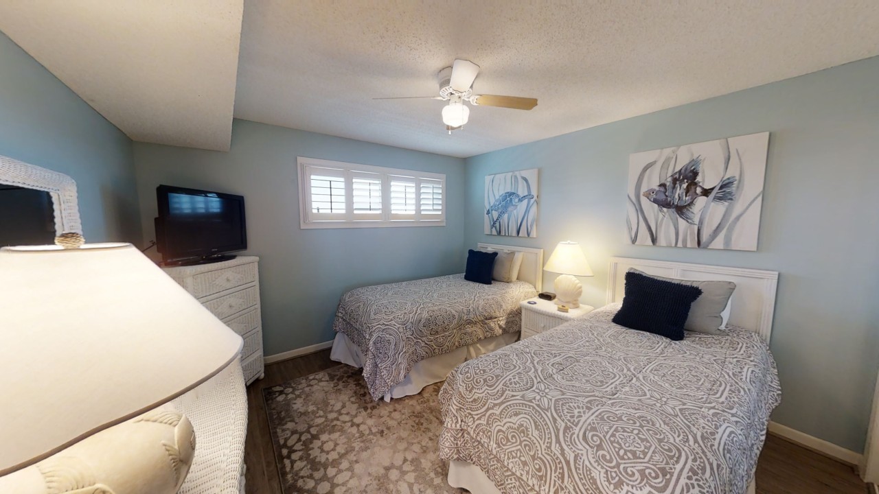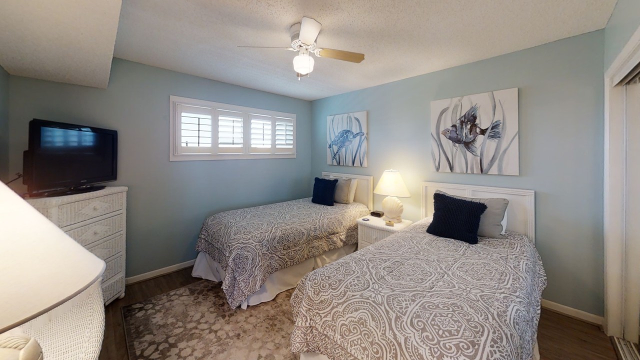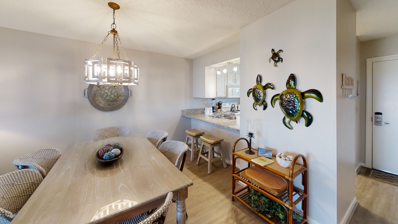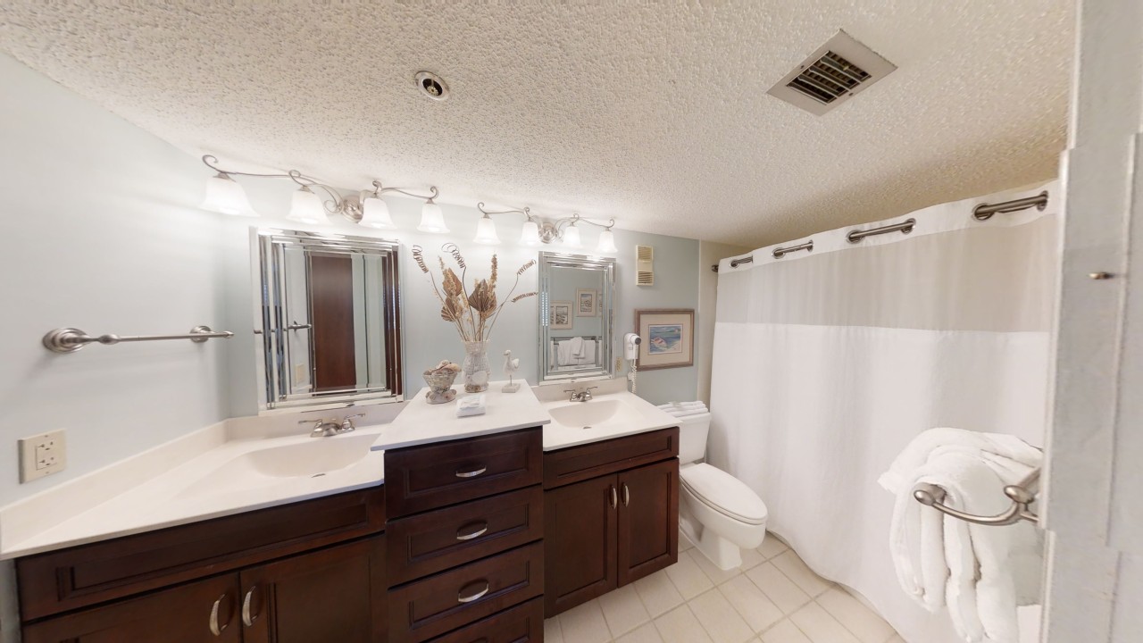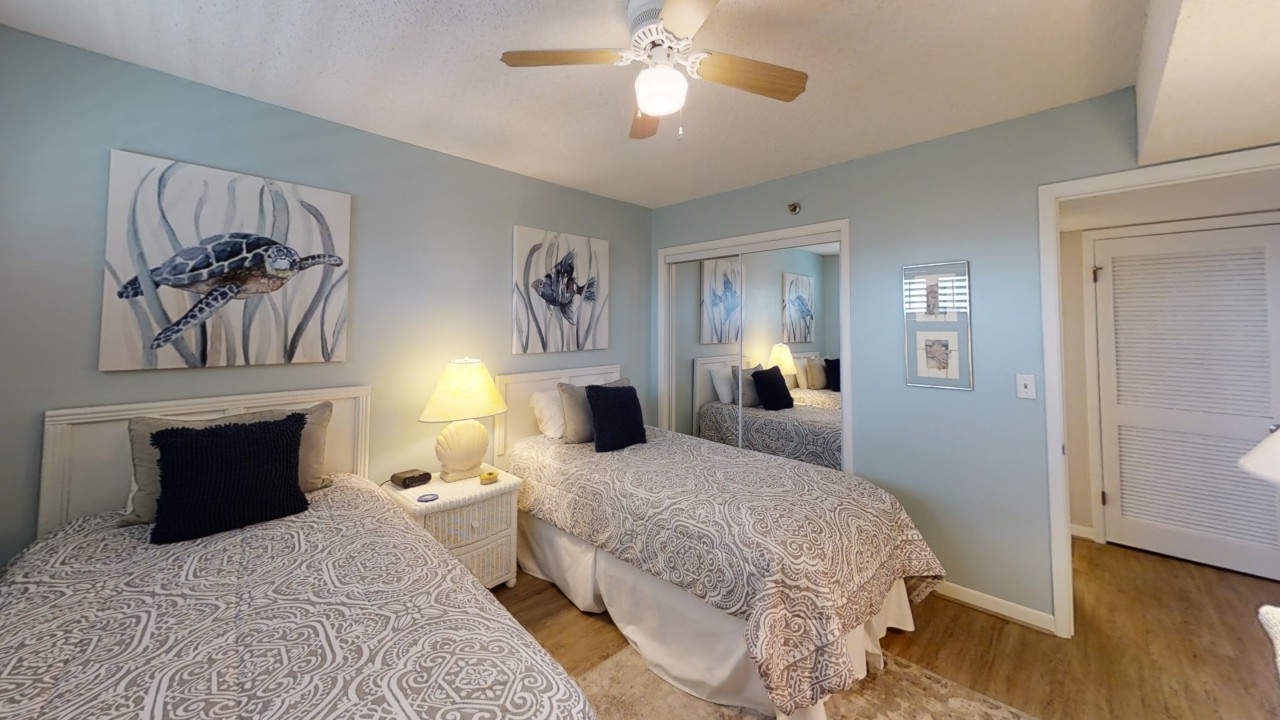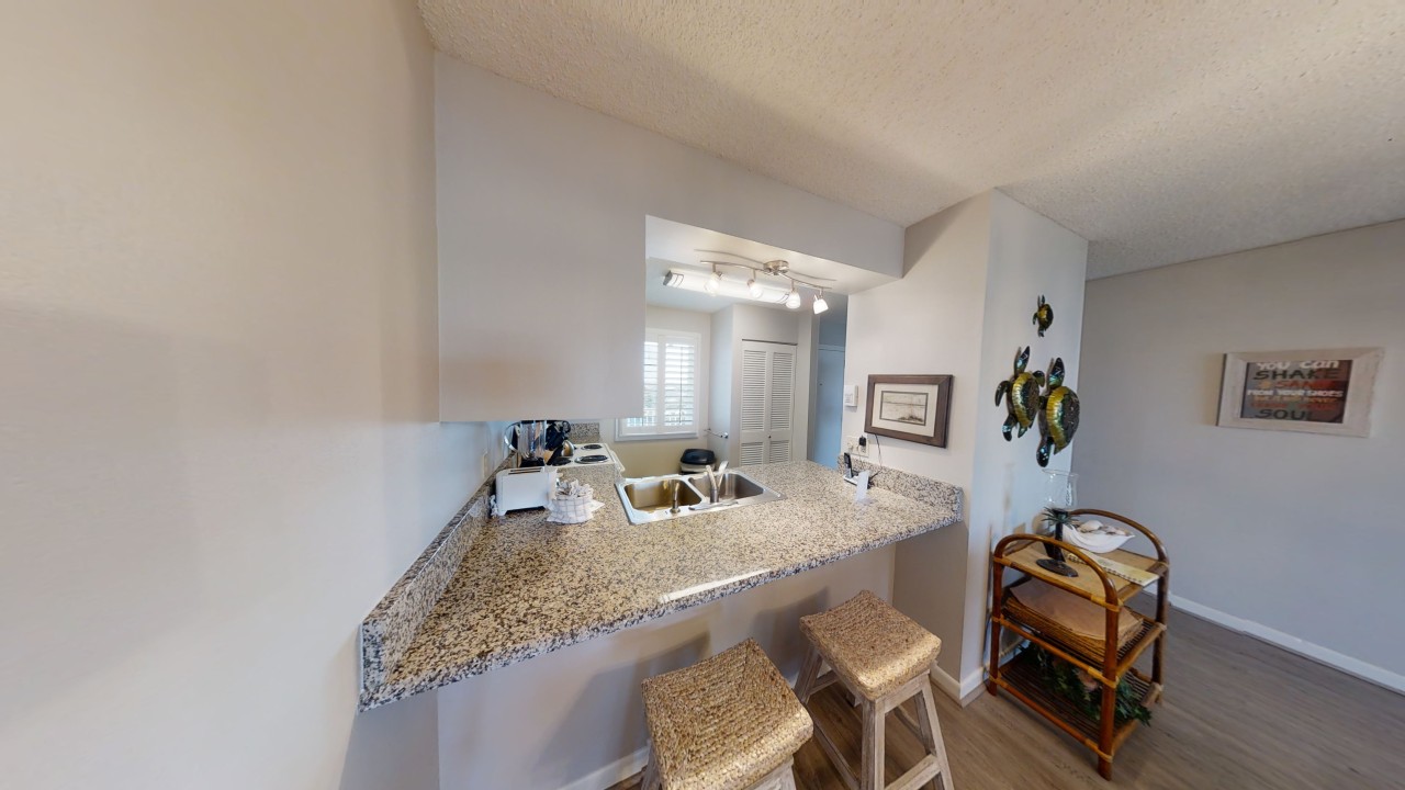 To preserve the quality, this unit only rents during the late spring/summer season. This beach front vacation condo rental is located in Destin Florida along the Emerald Coast. Unit 713 accommodates up to 6 people with a king in the master bedroom, 2 extra-long twin beds in the guest bedroom 24' TV, and a queen sleeper sofa in the living room 42' TV. This unit has vinyl wood plank flooring throughout. The west view from the private balcony features water, coastline, and beautiful sunsets all year. All units are non-smoking.