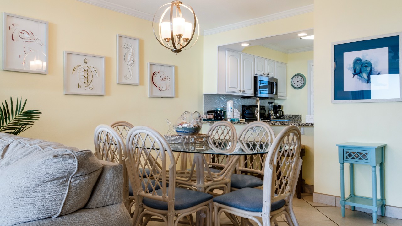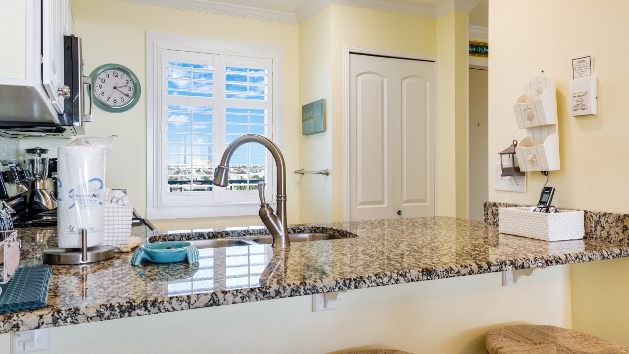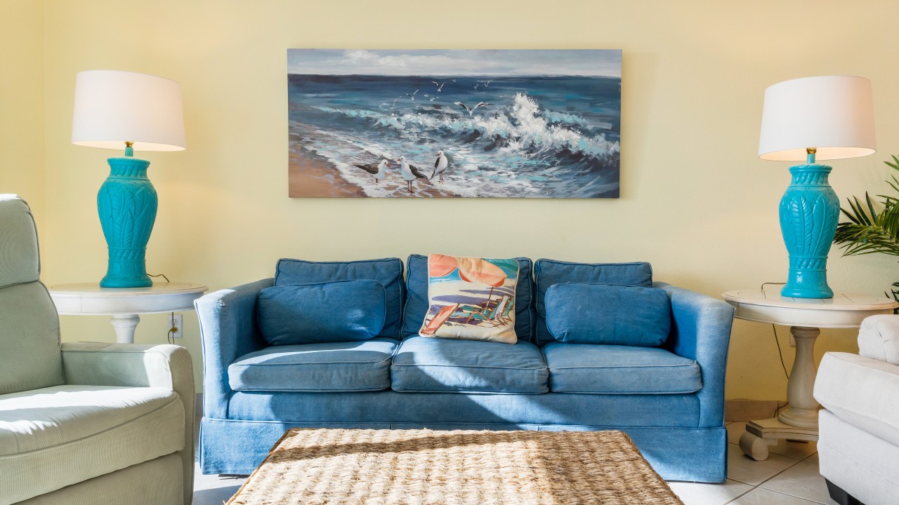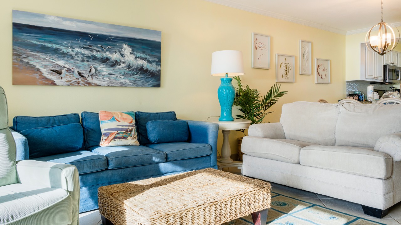 This vacation rental has a newly remodeled kitchen to include stainless steel appliances and all the cookware you should need for a weeks getaway! Recently replaced the living room sofa, loveseat, chair, and lamps in the living room to include new area rug and side tables. Enjoy ceiling fans in both bedrooms and the living area. The unit is freshly painted throughout. Both bathroom vanities have been replaced. Both bedrooms feature new plantation shutters.