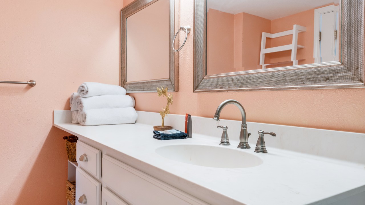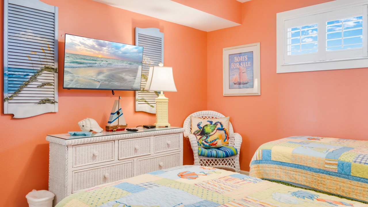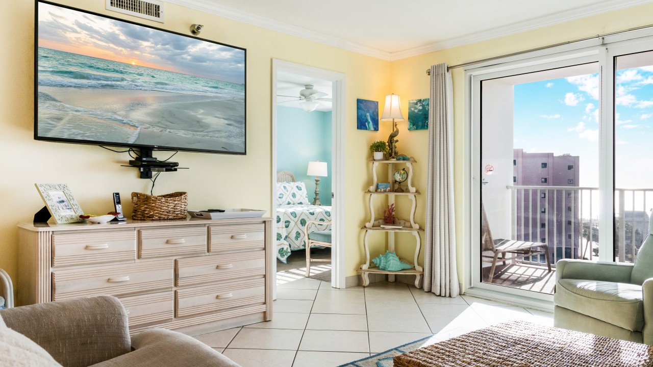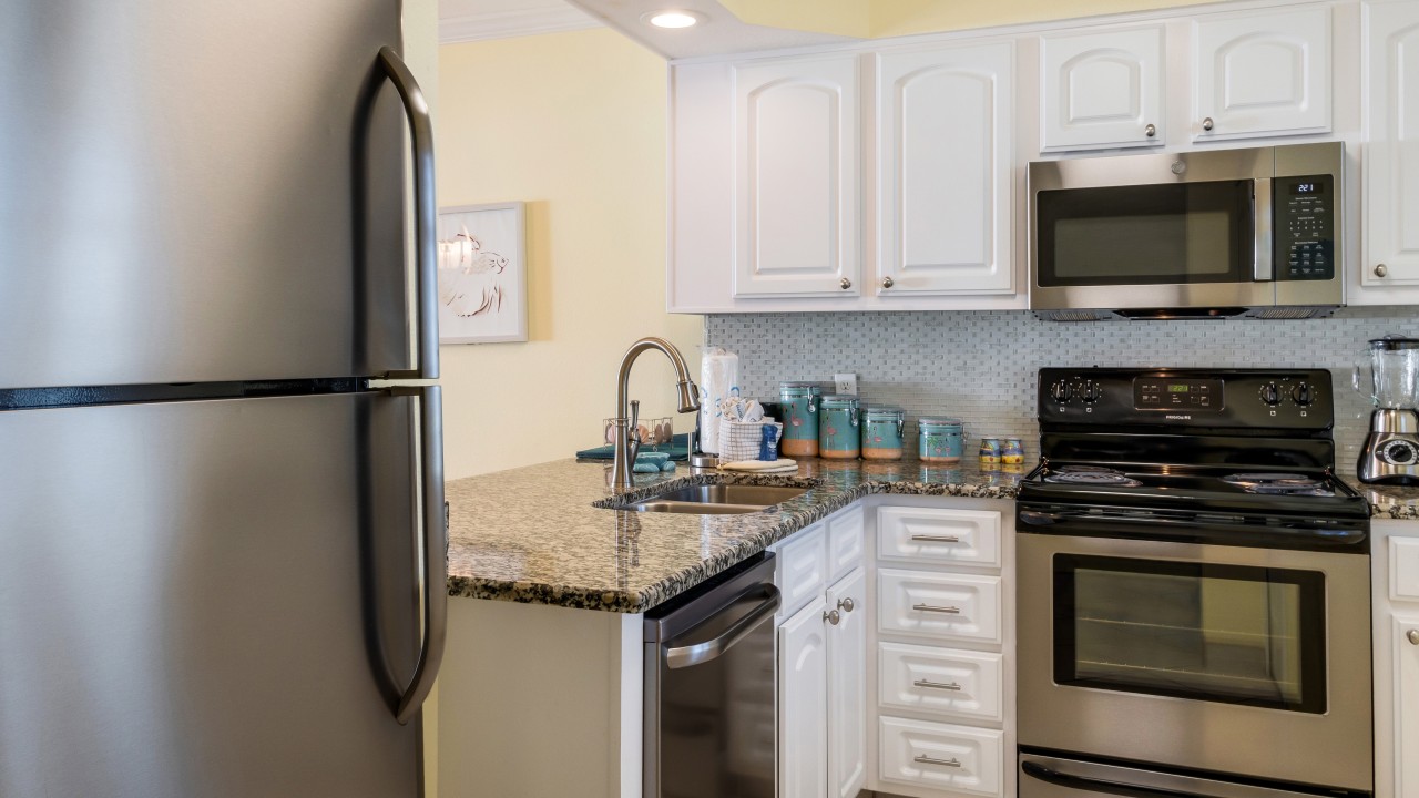 This vacation rental has a newly remodeled kitchen to include stainless steel appliances and all the cookware you should need for a weeks getaway! Recently replaced the living room sofa, loveseat, chair, and lamps in the living room to include new area rug and side tables. Enjoy ceiling fans in both bedrooms and the living area. The unit is freshly painted throughout. Both bathroom vanities have been replaced. Both bedrooms feature new plantation shutters.