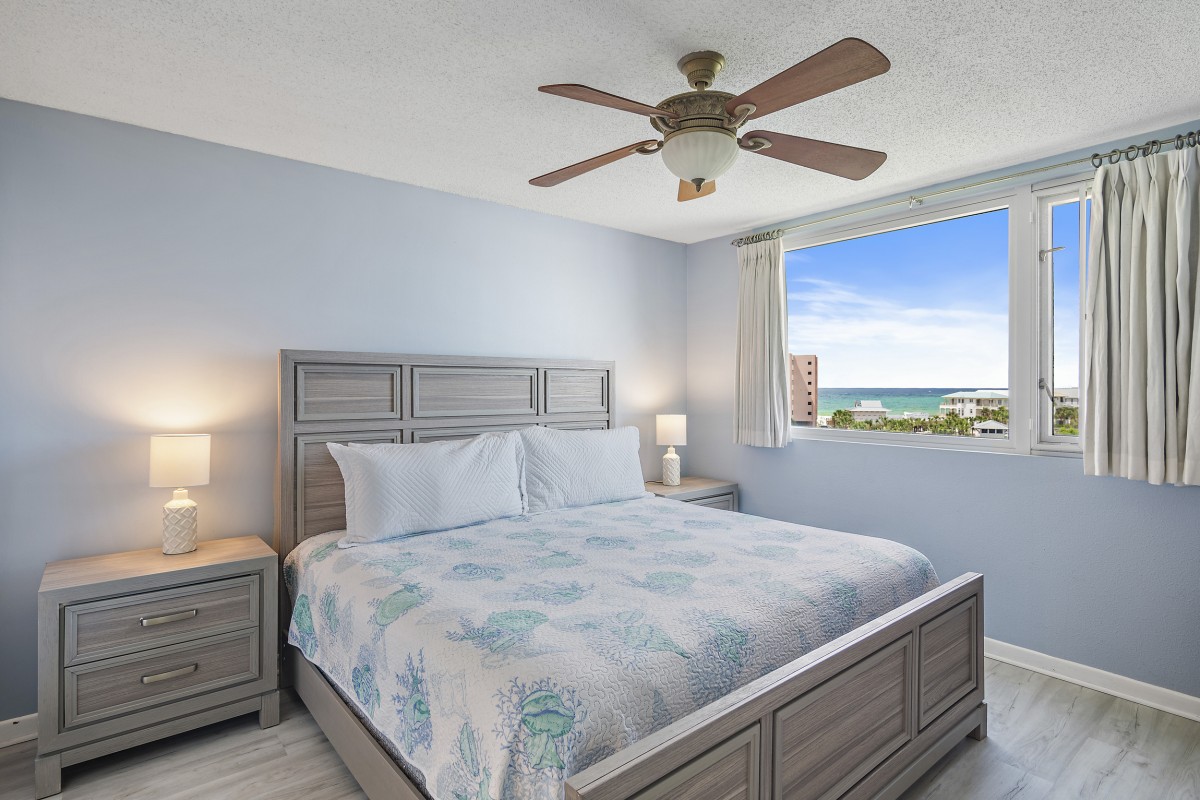 This inviting vacation rental offers a wonderful retreat overlooking Destin Pass and the Jetty, providing the perfect blend of comfort, style, and beautiful views. Accommodating up to 6 guests, it features a king bed in the master bedroom and two twin beds in the guest bedroom, ideal for a family or group getaway. Enjoy a fully equipped kitchen, a comfortable living and dining area, and a private balcony with breathtaking sunset views.