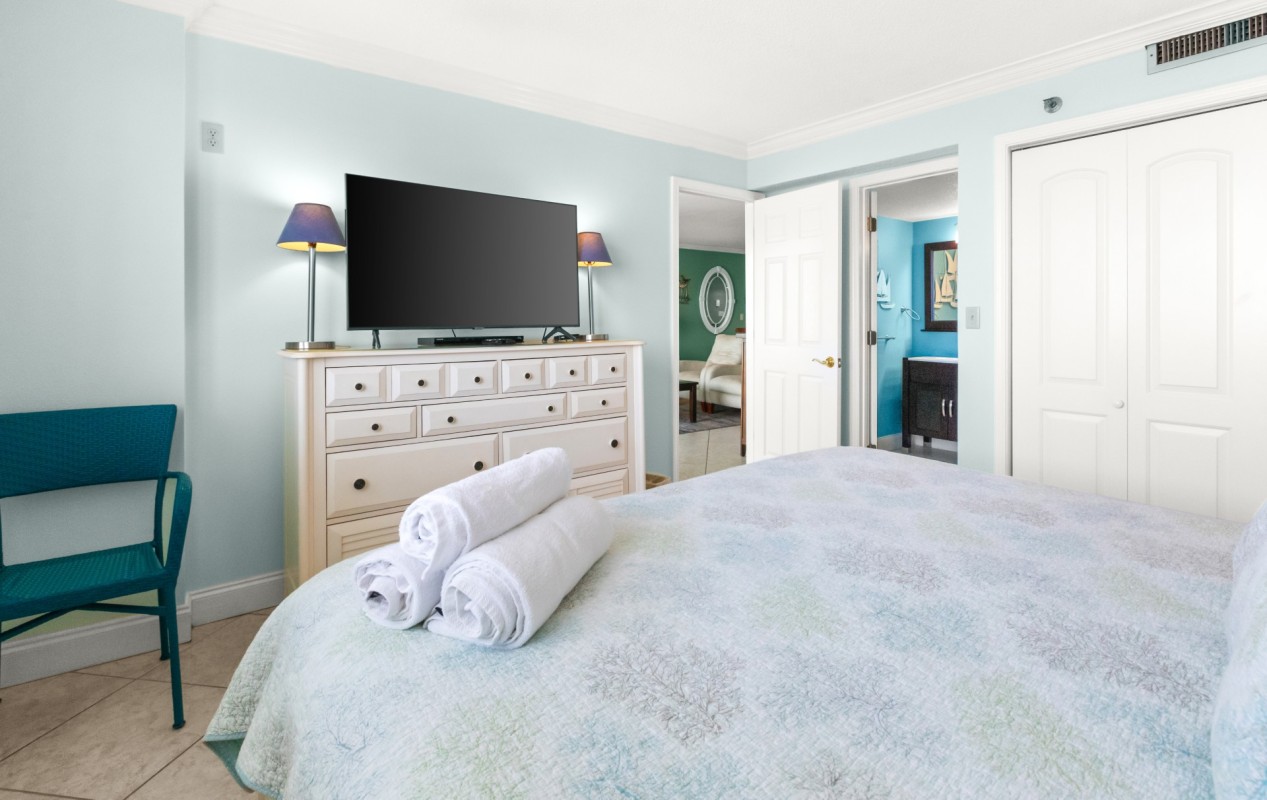 Bedrooms: Spacious master bedroom boasts a luxurious king bed, ensuring restful nights and relaxation, complete with a 50” Smart TV. The cozy guest bedroom features two twin beds, ideal for additional guests, and has a 50” Smart TV. Perfect for a great night sleep after an exciting day visiting Destin’s area activities & attractions.